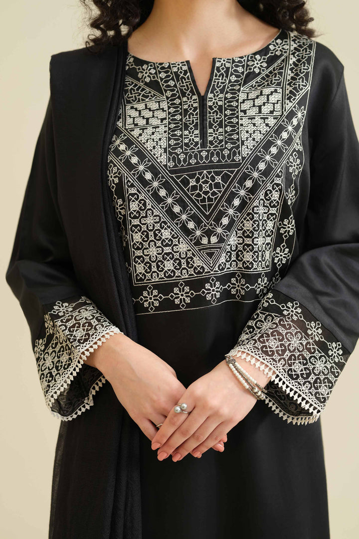 Elevate your winter style with this embroidered three-piece suit from the latest Pret Winter Collection, designed for enduring sophistication.