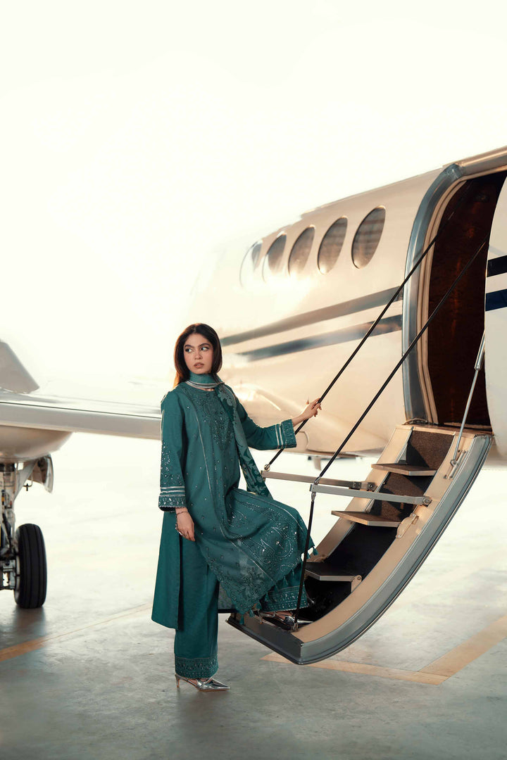 Refresh your festive wardrobe with this embroidered three-piece suit from the latest Pret Winter Collection, designed for lasting charm.