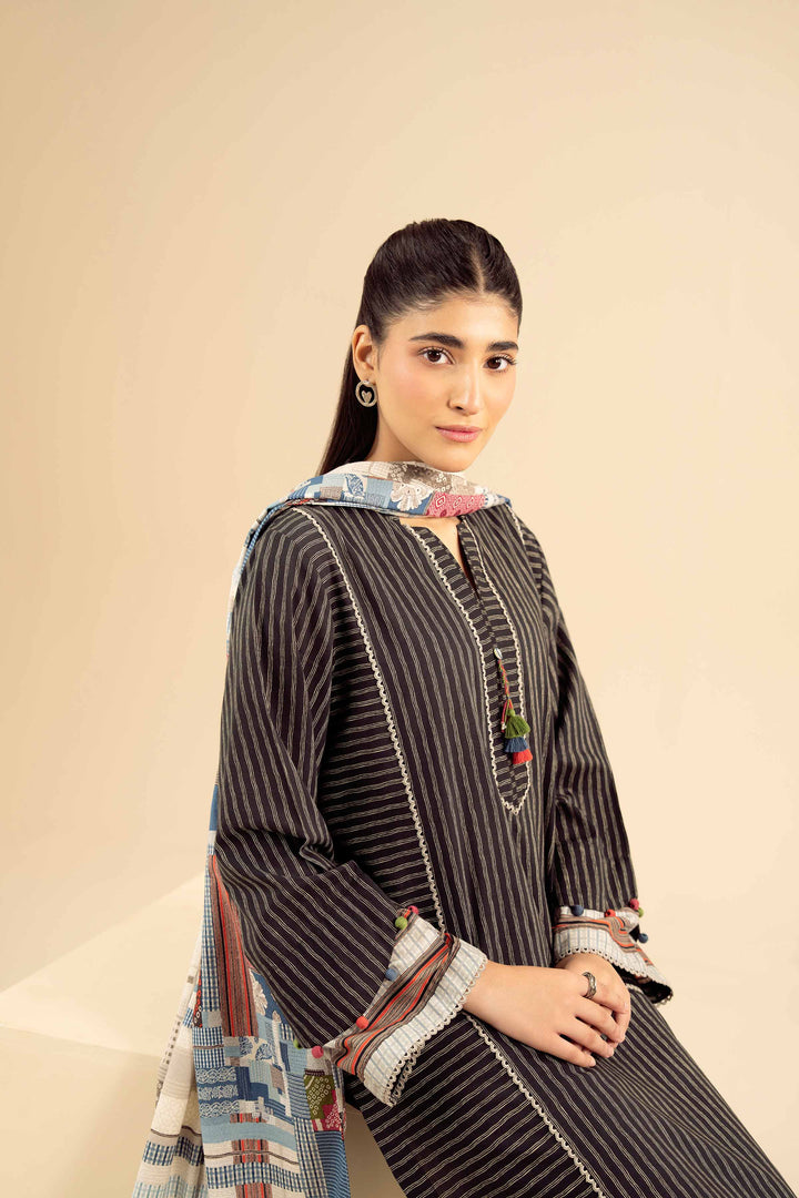 Refresh your wardrobe with this printed three-piece suit from the latest Pret Winter Collection, designed for lasting charm.