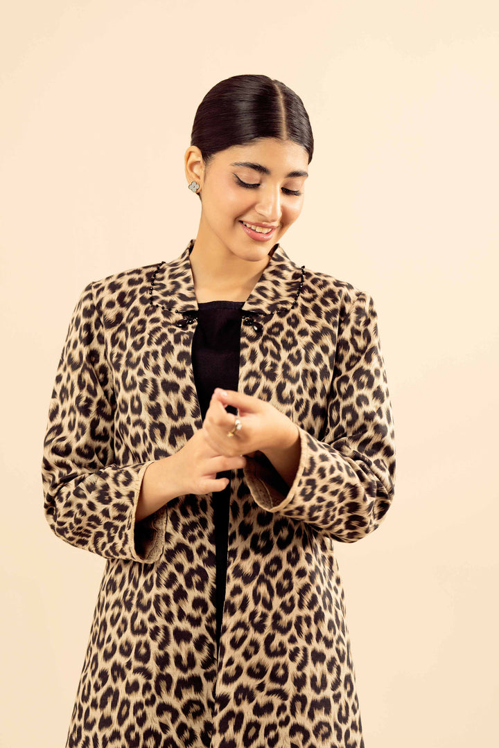 Upgrade your winter wardrobe with this printed jacket from the latest Pret Winter Collection, styled for elegance and versatility.