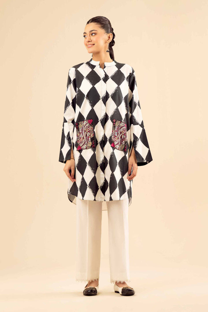 Elevate your winter wardrobe with this printed embroidered shirt from the latest Pret Winter Collection, styled for elegance and versatility.