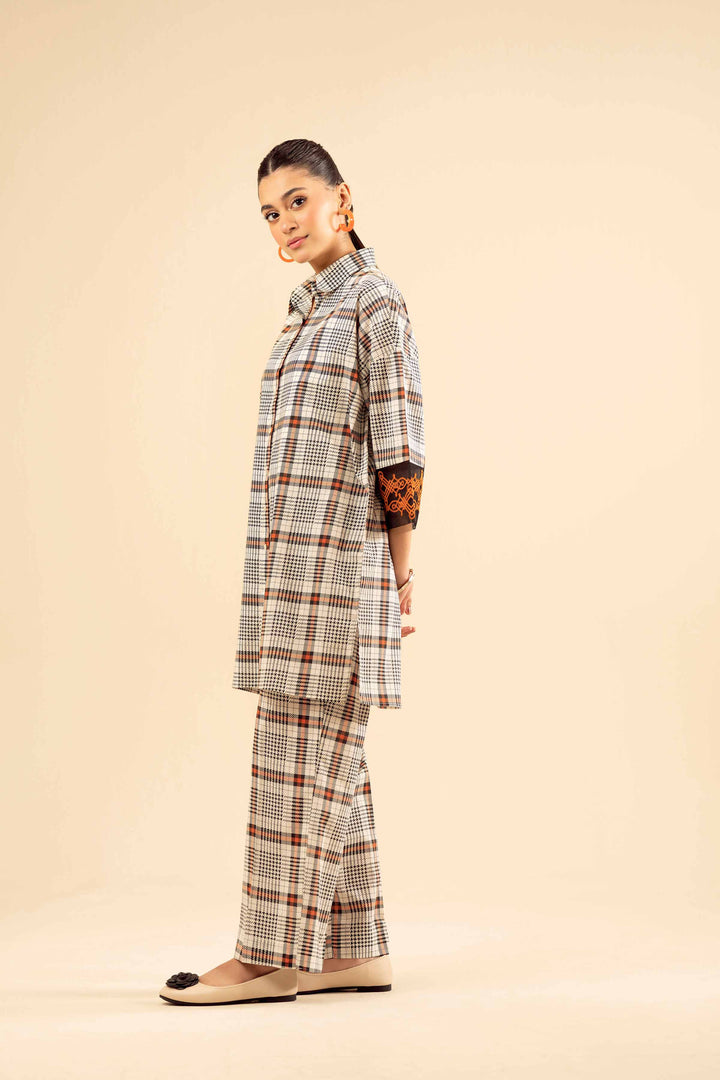 Refresh your winter look with this printed embroidered two-piece suit from the latest Pret Winter Collection, styled for timeless seasonal elegance.