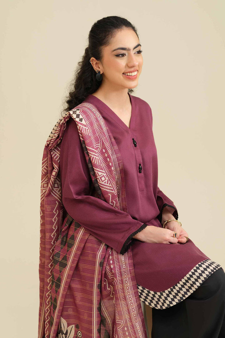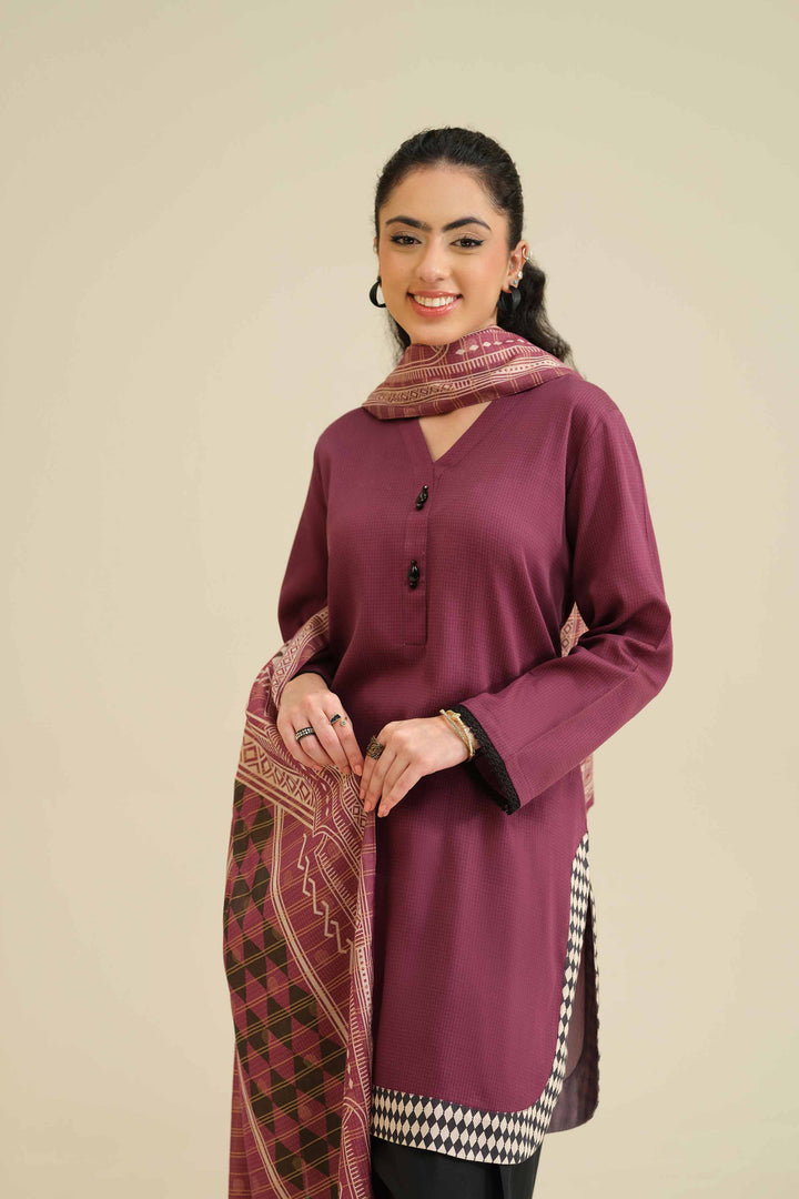 Elevate your winter wardrobe with this basic two-piece suit from the latest Pret Winter Collection, styled for elegance and seasonal charm.