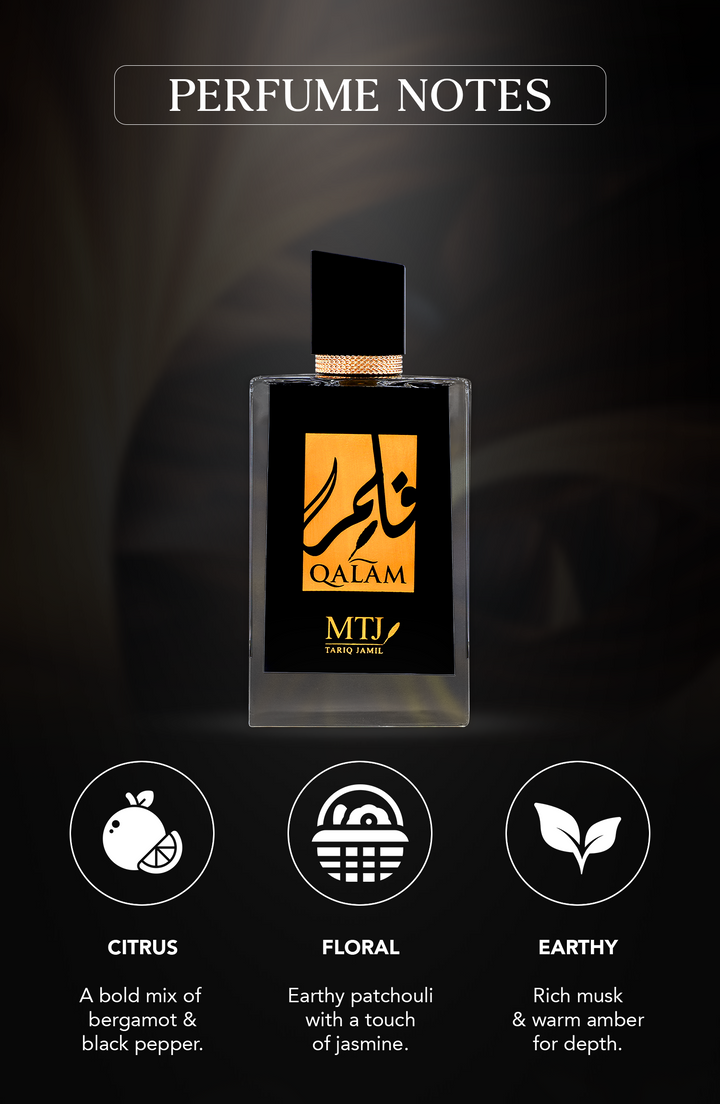 Qalam, a captivating men’s fragrance that embodies sophistication and strength through its woody spicy composition.