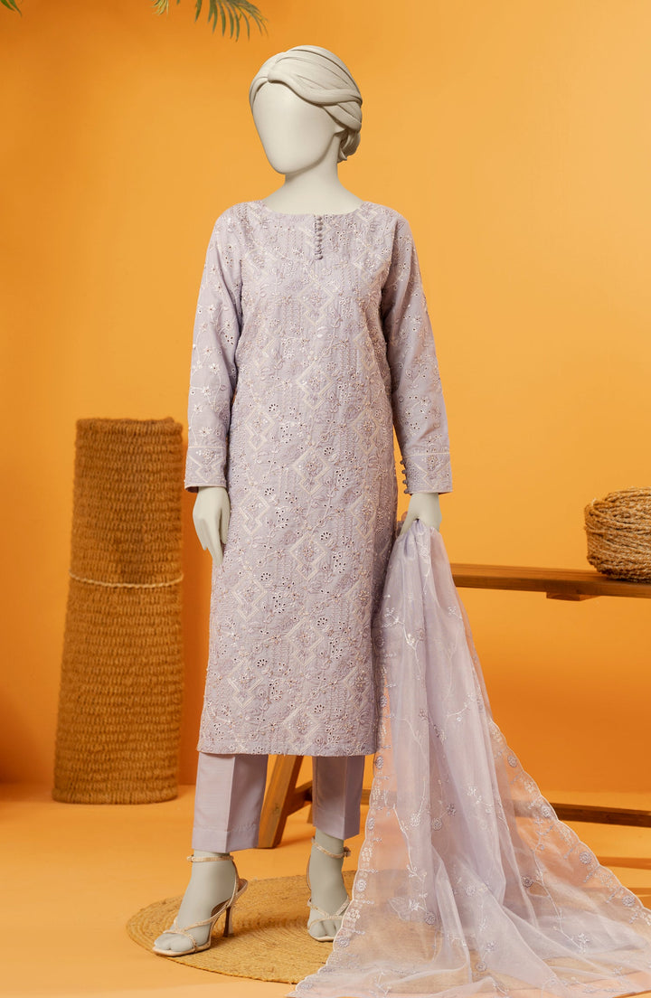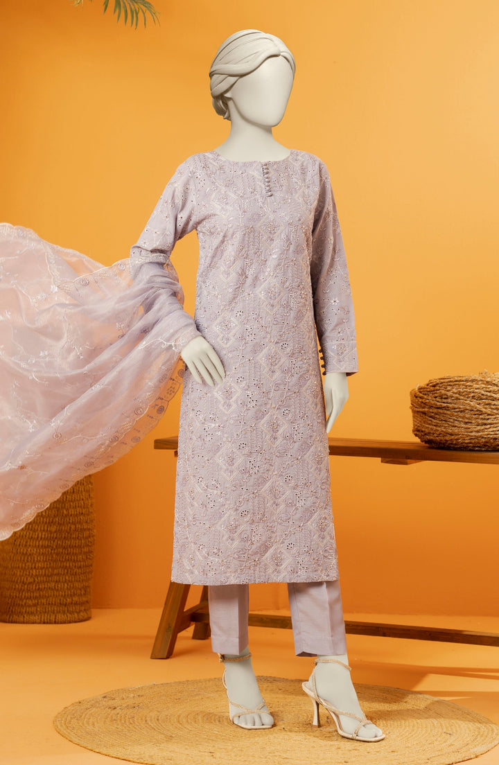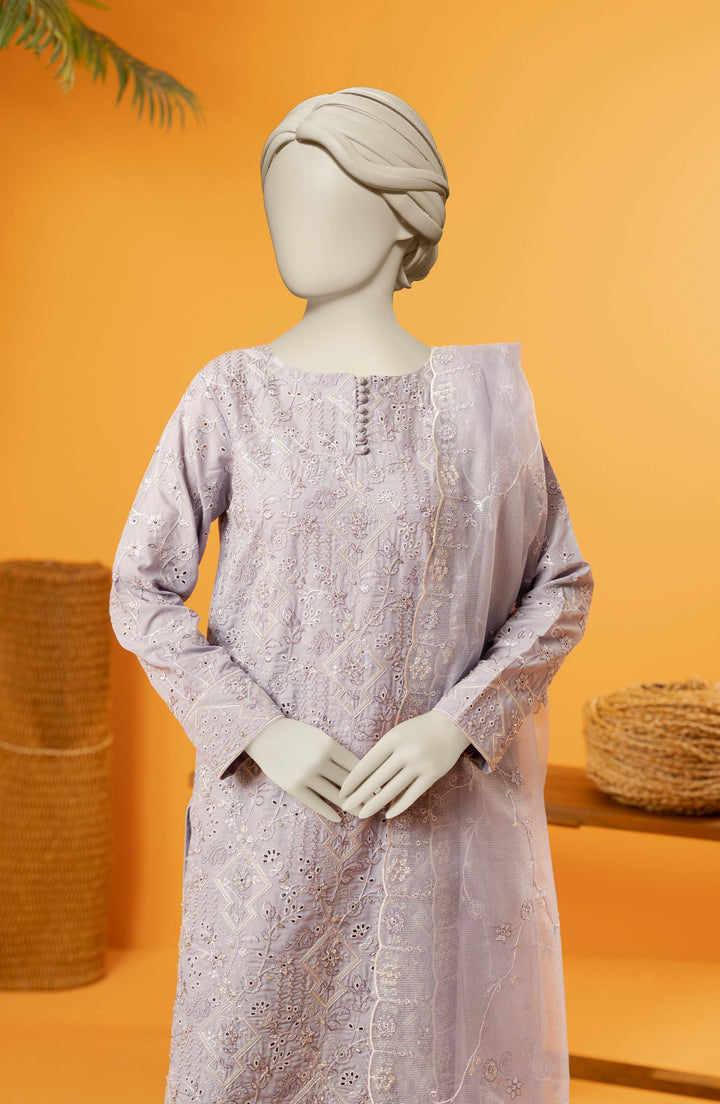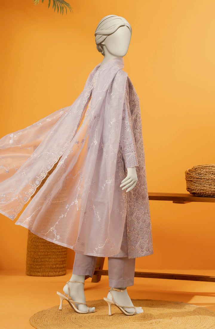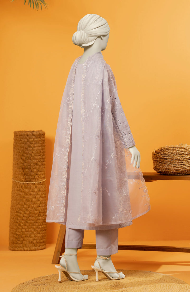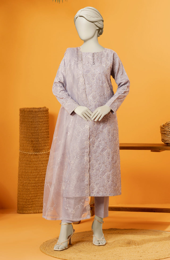 RAW SILK EMBROIDERED STITCHED 3 PIECE