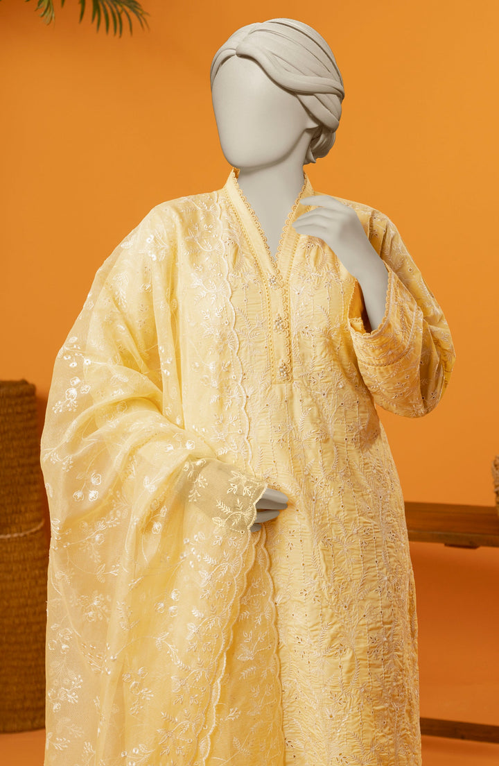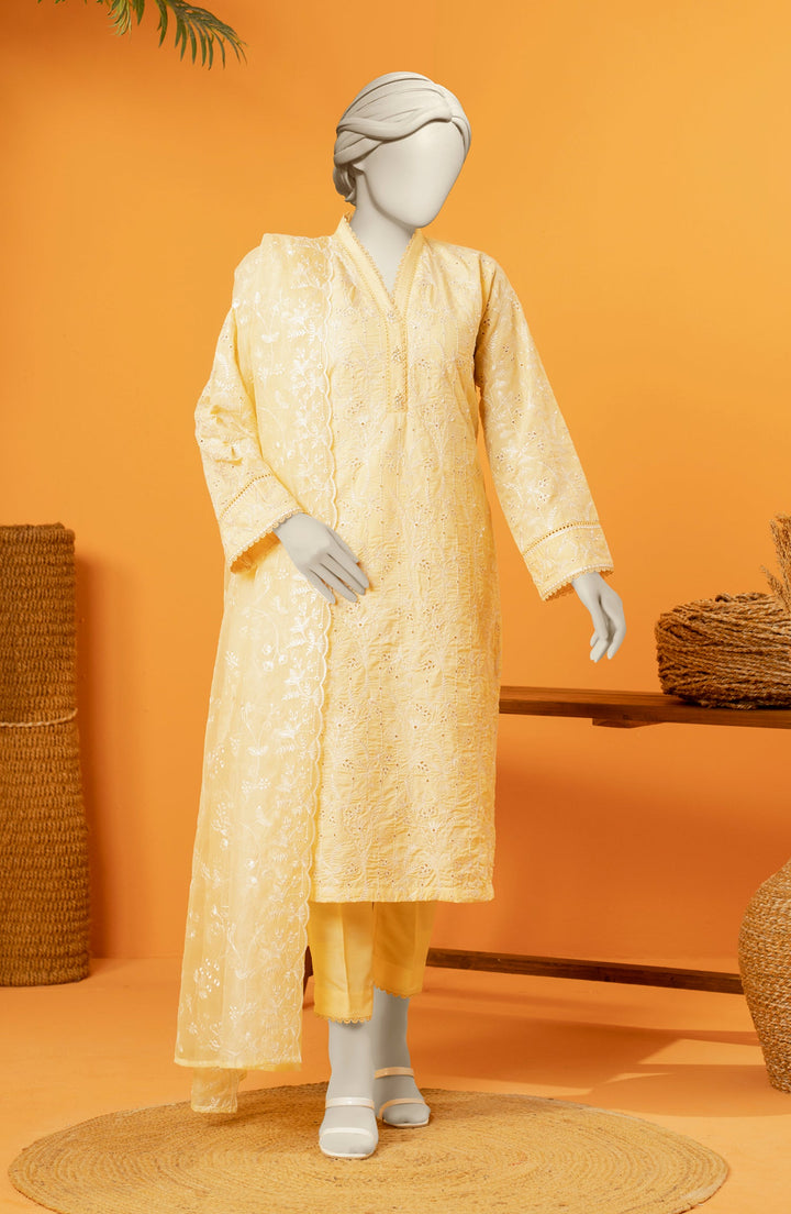 RAW SILK EMBROIDERED STITCHED 3 PIECE