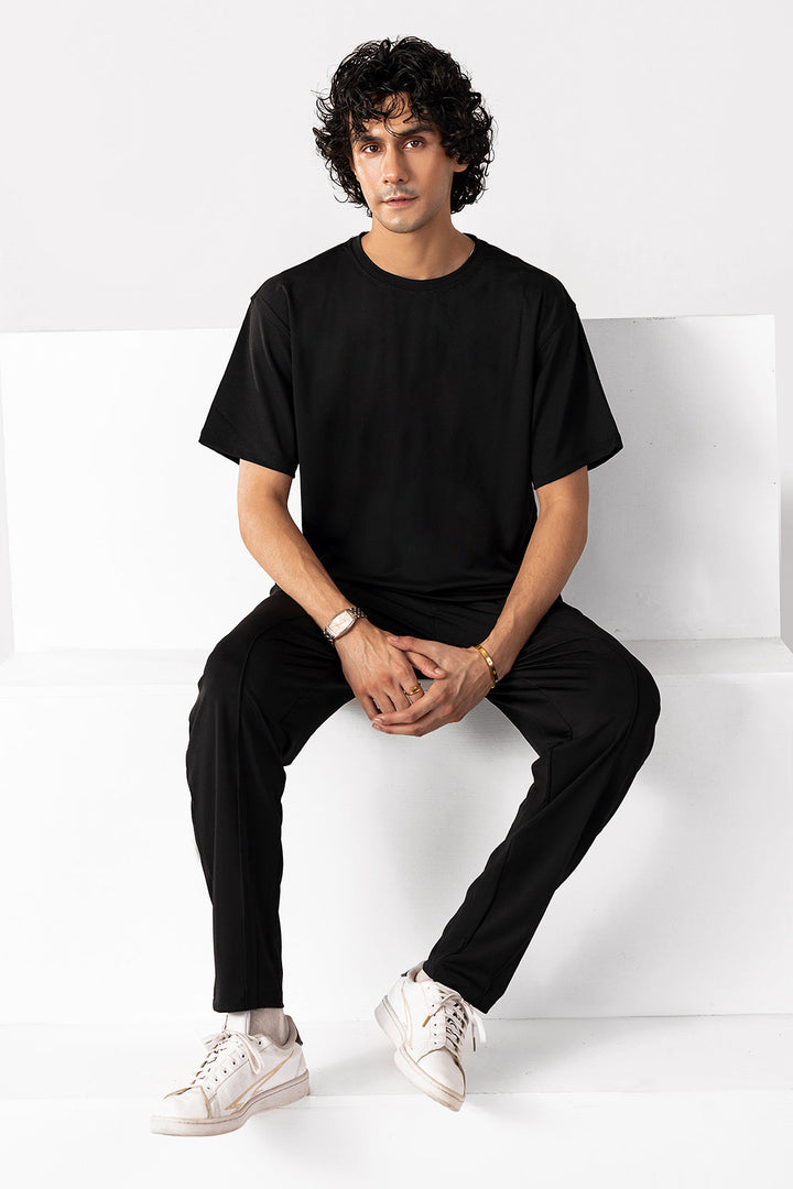 Redefine Everyday Ease With SAYA’s Relaxed Drawstring Trousers In Black, Expertly Tailored From Premium Scuba Fabric Offering A Smooth Finish, Subtle Stretch, And Lasting Comfort. The Relaxed Silhouette Provides Unrestricted Movement, While The Adjustable Drawstring Waist Ensures A Secure, Personalized Fit. Finely Finished With Clean Stitch Lines And A Sleek Drape, These Trousers Reflect Effortless Sophistication. The Timeless Black Shade Enhances Versatility—Perfect For Casual Outings, Travel, Or Smart-Casual Styling. Designed To Combine Comfort, Functionality, And Refined Modern Aesthetics, This Piece Is A Must-Have Wardrobe Staple.