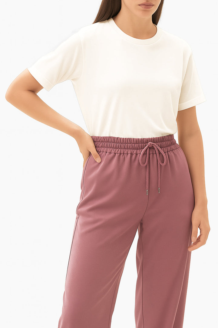 The Relaxed Drawstring Trousers – Ash Rose By SAYA Offer Effortless Comfort With Contemporary Elegance. Crafted From A Soft, Flowing Fabric, These Trousers Feature A Relaxed Silhouette Enhanced By A Functional Drawstring Waist, Allowing For Easy Adjustment And Day-Long Wearability. The Gentle Ash Rose Shade Adds A Sophisticated Yet Feminine Appeal, Making It A Versatile Choice For Both Casual And Semi-Formal Outings.