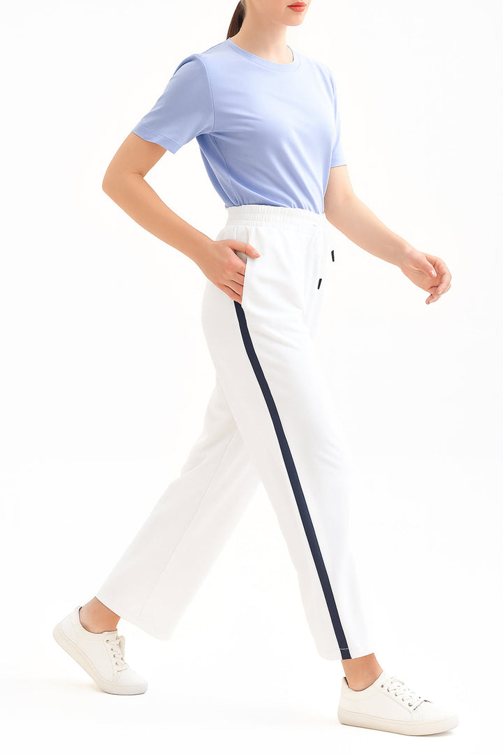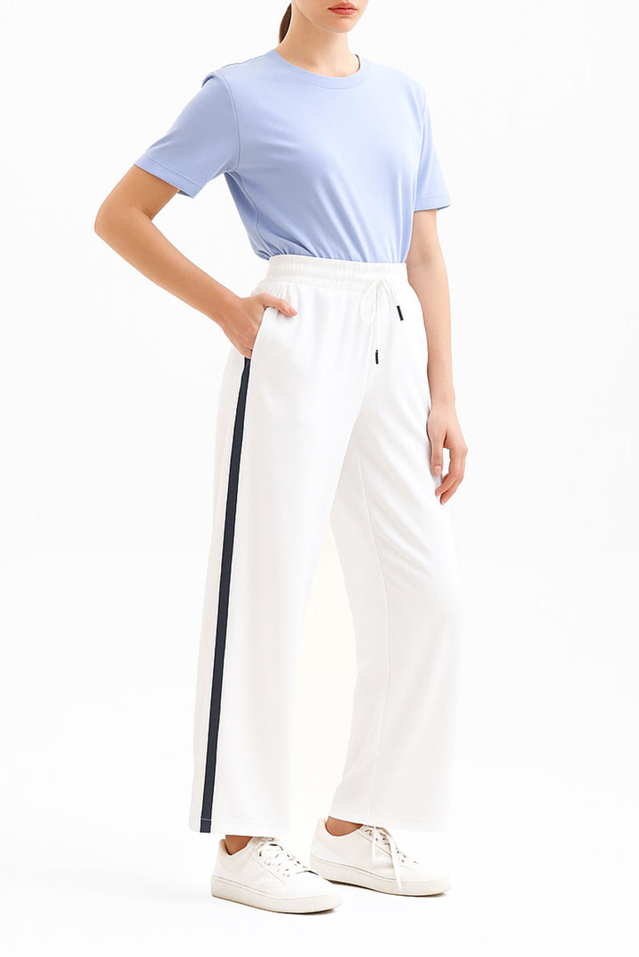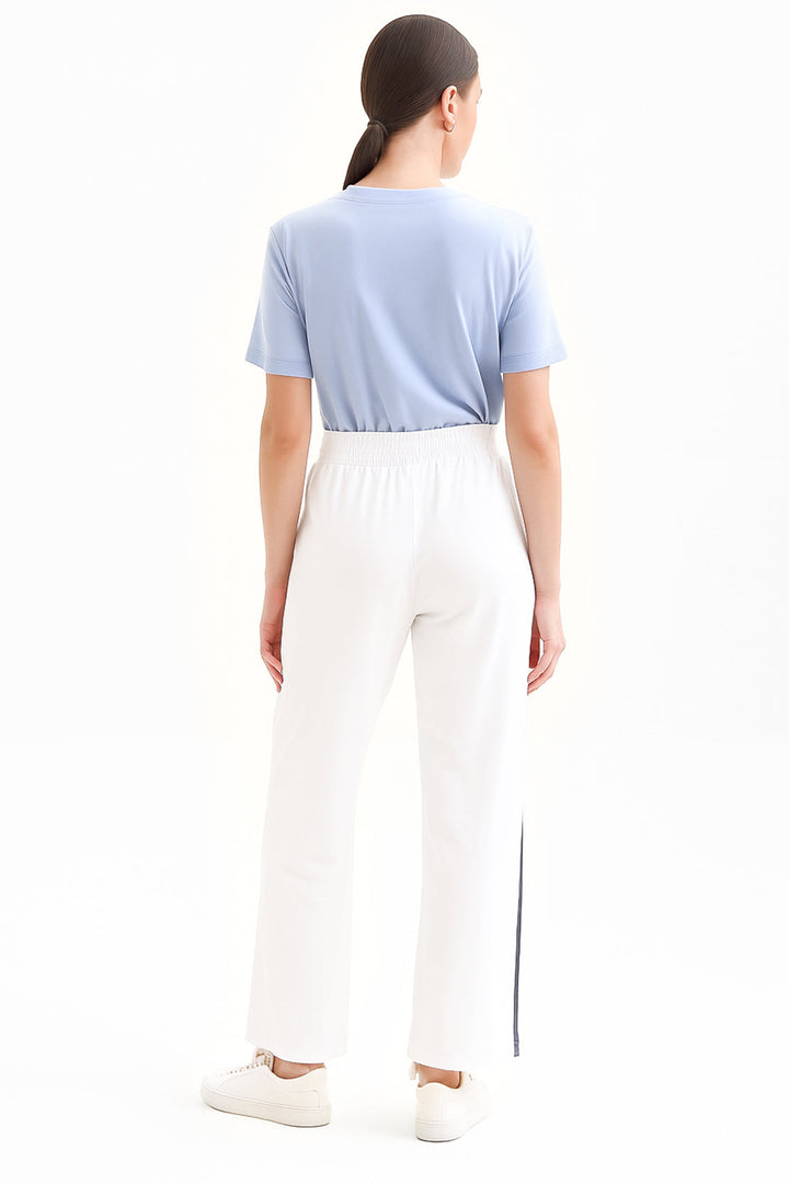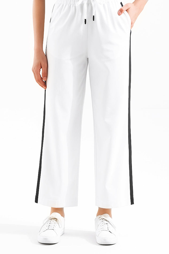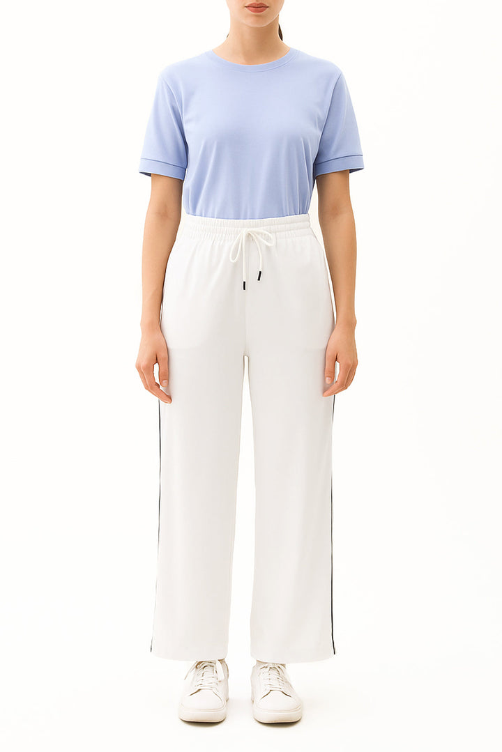 The Relaxed Drawstring Trousers – White By SAYA Combine Casual Ease With Refined Comfort. Crafted From Soft Scuba Fabric, These Trousers Feature A Relaxed Silhouette Enhanced By An Adjustable Drawstring Waist For A Custom Fit. The Clean White Hue Offers A Soothing, Versatile Palette That Works Perfectly For Daily Casual Looks, Elevated Lounge Styling, Or Light Travel Wear.