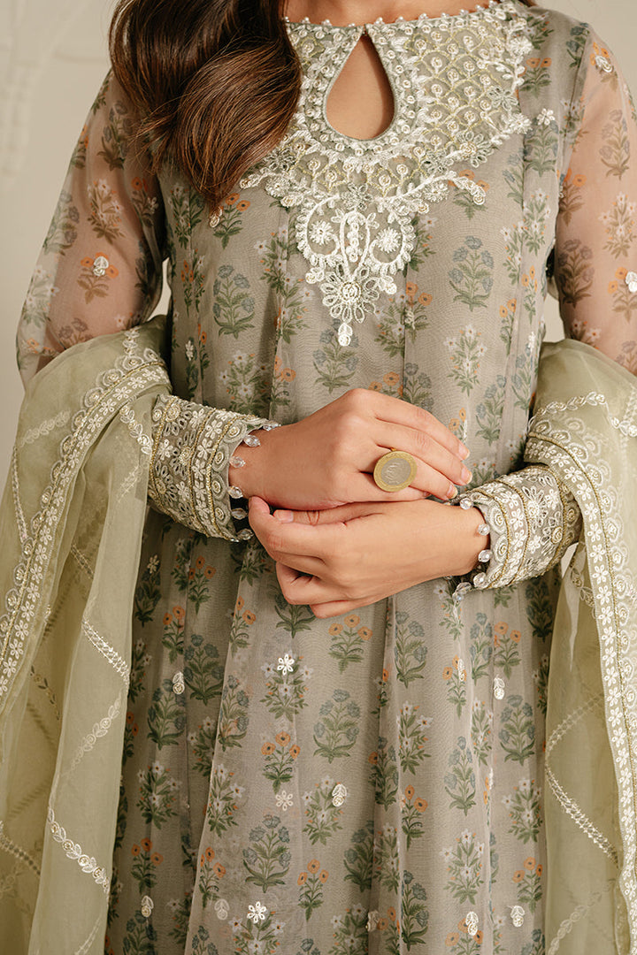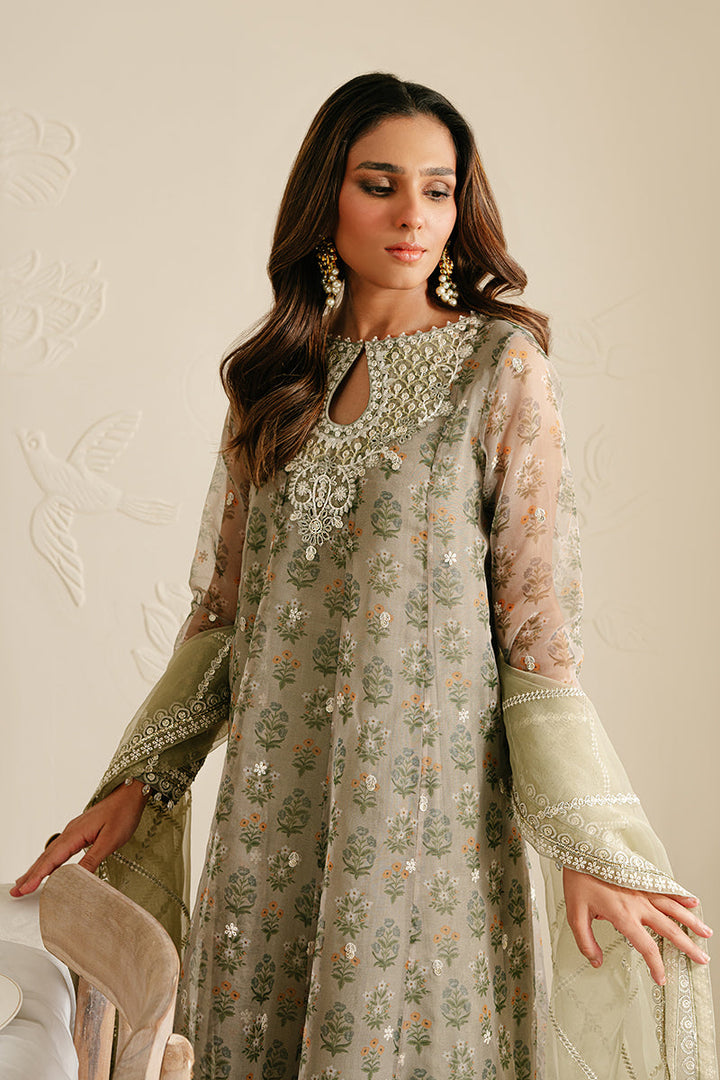 The RELIC FOSSIL-4PC is an exquisite set featuring an organza digitally printed and embroidered shirt, 1 embroidered neckline, 50 embroidered patti for the front hem, 50 embroidered patti for the back hem, 40 embroidered patti for the sleeves, 60 embroidered patti for the trousers, and a dyed silk slip. The set also includes a silk dyed trouser and an organza embroidered dupatta. Expertly crafted and sophisticated, the RELIC FOSSIL-4PC is the ideal addition to any wardrobe.