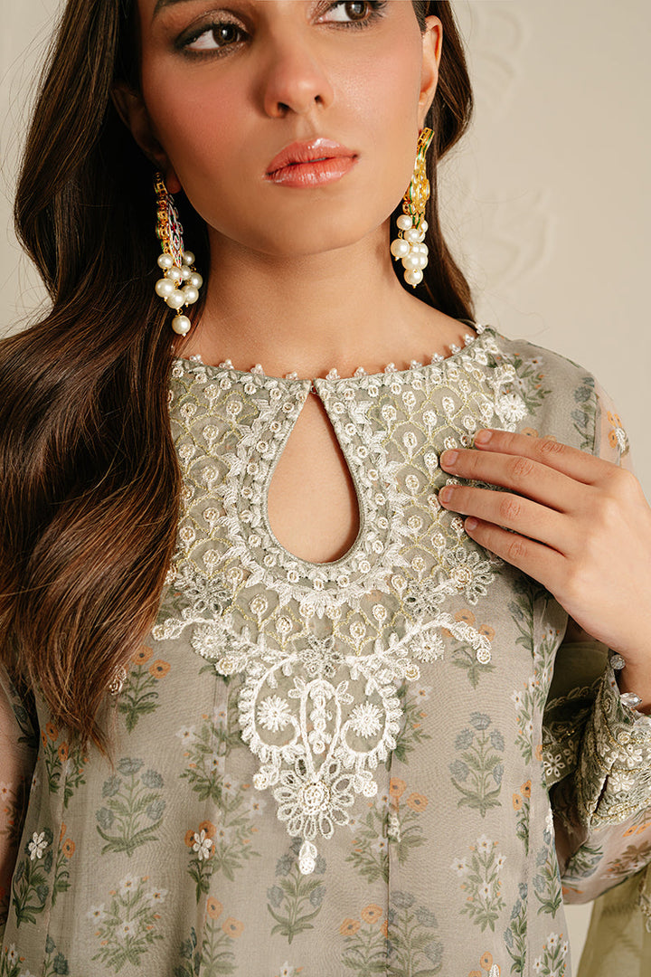 - Organza digital printed and embroidered shirt front, back and sleeves