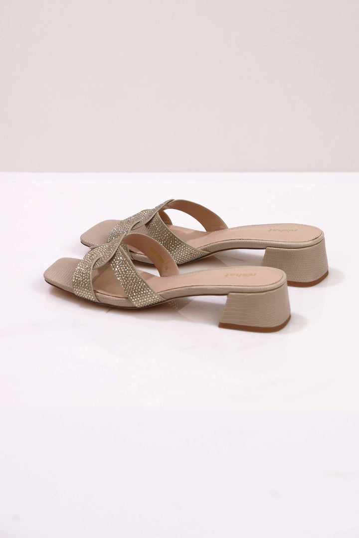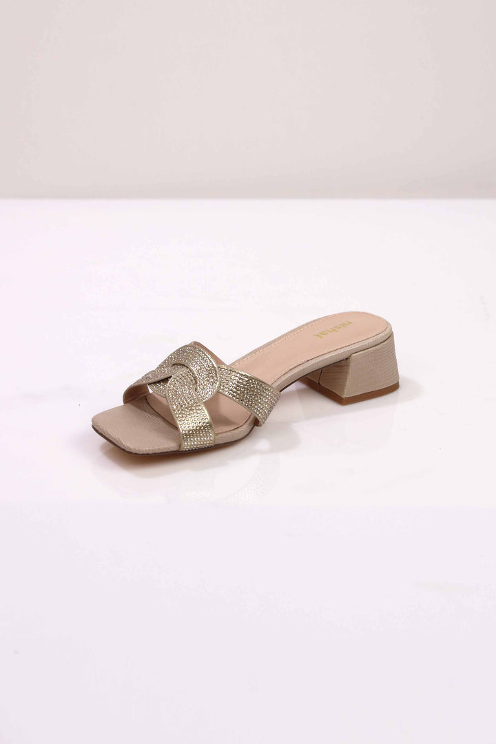 Keep yourself stylish while staying in your comfort zone with this embellished square toe shape block wedge by nishat.