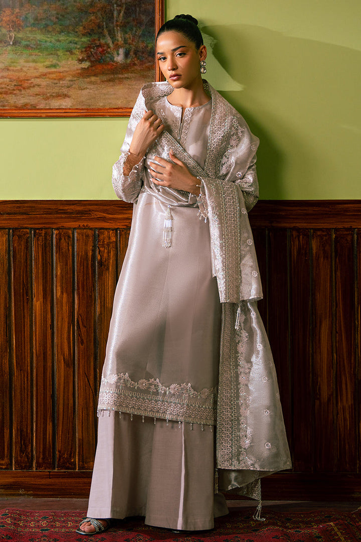 Expertly crafted, the ROSE SHELL embroidered zari suit features a dyed shirt with intricate zari embroidery on the front, back, and sleeves. The 120" embroidered patti adds an elegant touch to the neckline. The silk trouser and slip provide a luxurious feel, while the zari embroidered dupatta completes the ensemble.