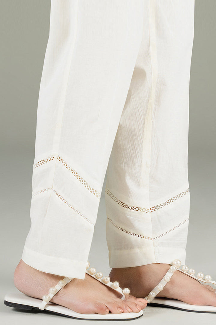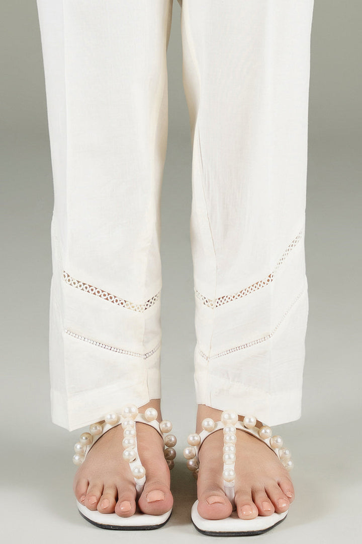 CAMBRIC STRAIGHT FIITED PANTS WITH LACE