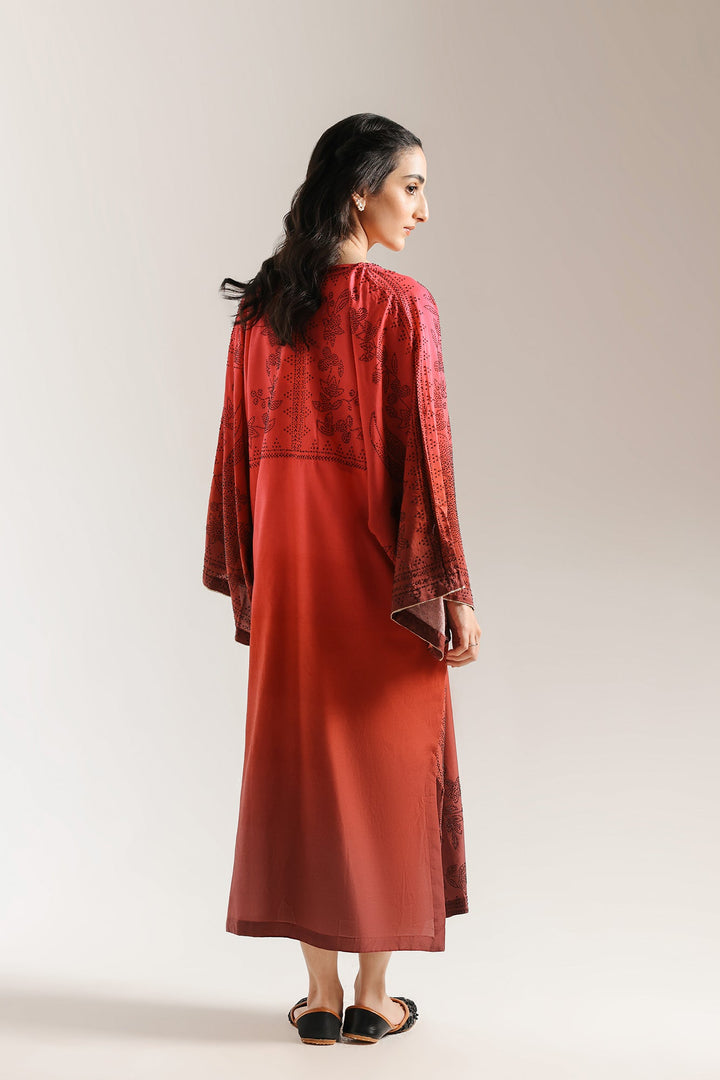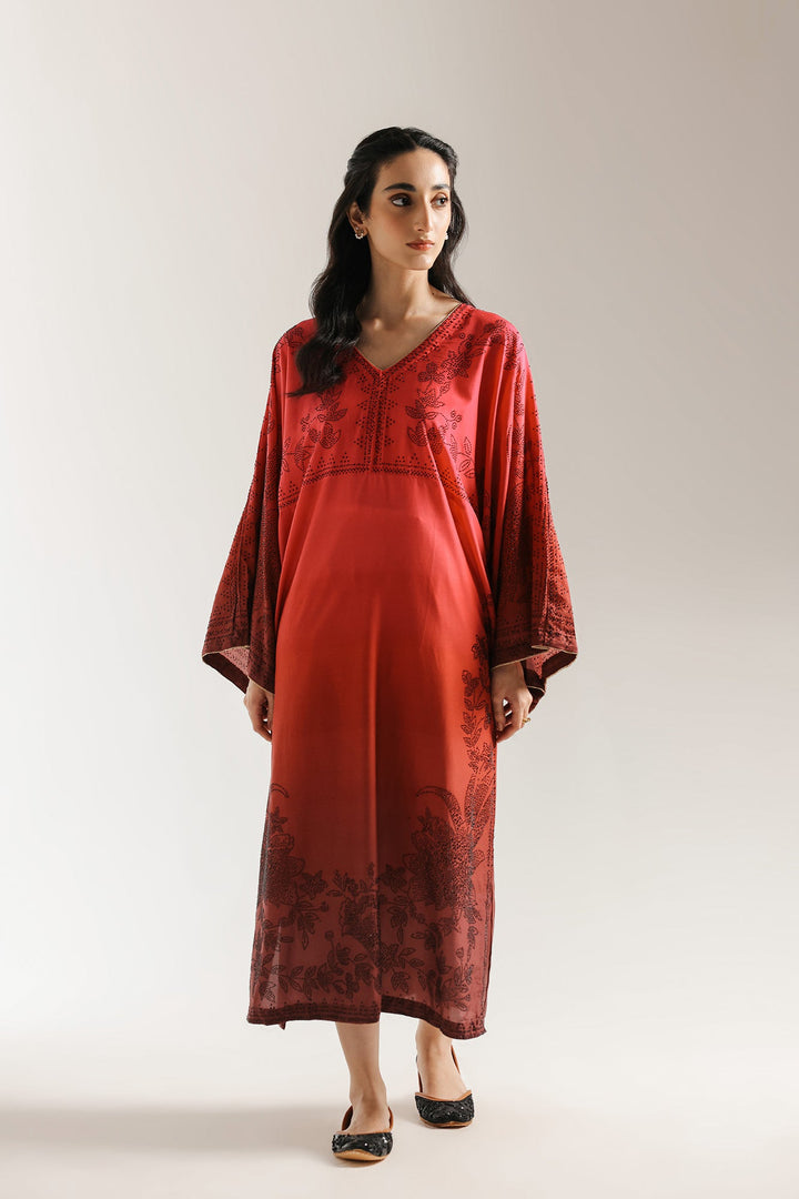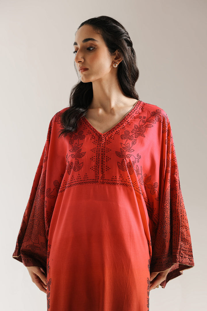 This striking embroidered shirt makes a bold statement with its vibrant color and intricate design. The rich orchid hue serves as a captivating base for the detailed bead embroidery, which features delicate floral and vine patterns across the chest, sleeves, and hemline. The relaxed, flowing silhouette and wide sleeves give the shirt a sophisticated yet comfortable feel. This piece combines traditional artistry with a modern aesthetic, making it a perfect choice for an elegant evening or a special occasion.