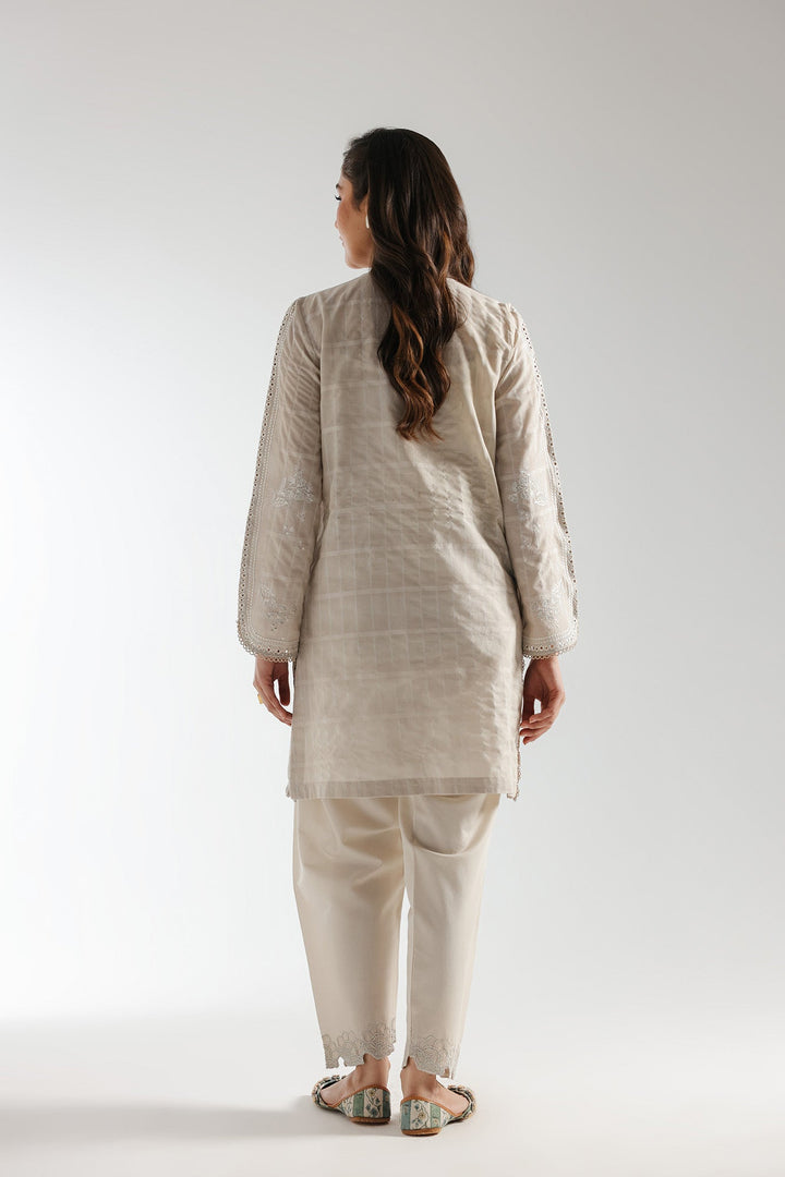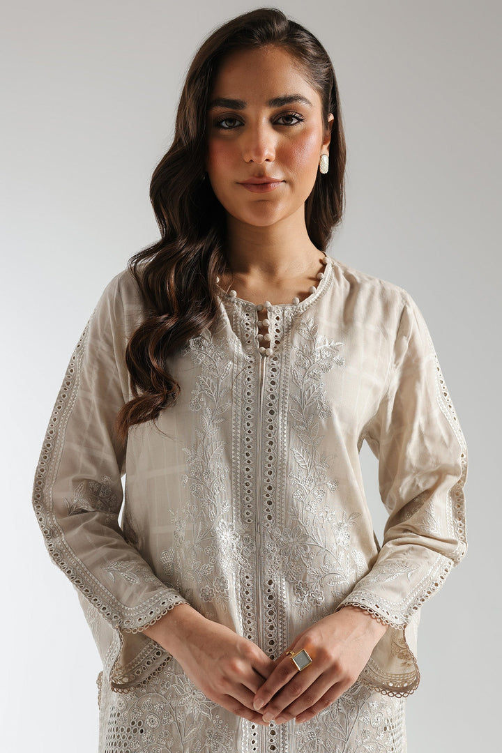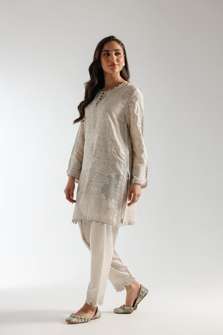A classically chic composition is portrayed on this style statement outfit. It features a contemporary shirt beautifully adorned with captivating floral designs embroidered with intricate details illustrating schiffli technique. Paired with a contemporary embroidered shalwar with scalloped bottom opening. This graceful outfit is a great addition to your spring season wardrobe.