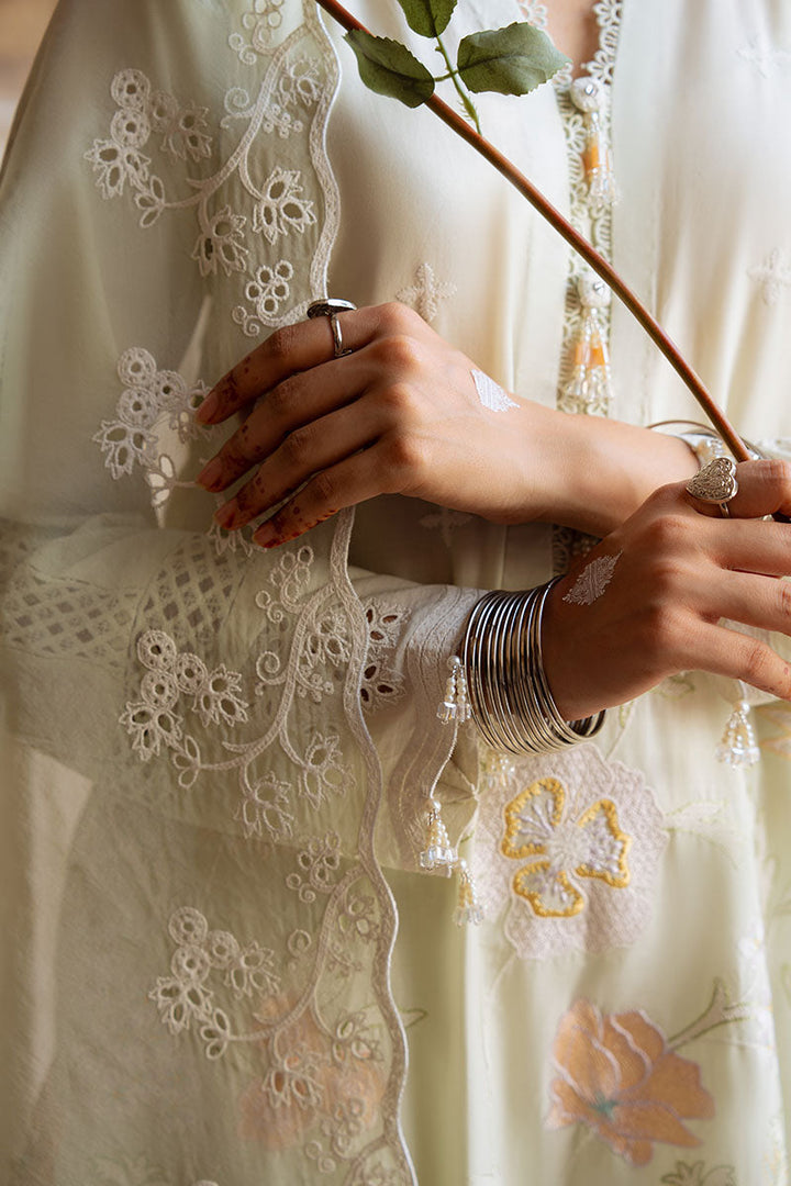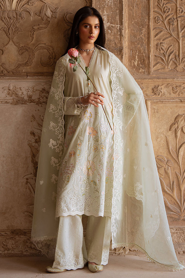 - Expertly crafted with lawn and cambric fabric, the AQUA SERENITY-3PC EMBROIDERED LAWN SUIT offers a blend of elegance and comfort. The front and sleeves feature intricate embroidery, while the back and trouser are dyed in a complementary shade. The organza dupatta adds the final touch to this sophisticated ensemble.