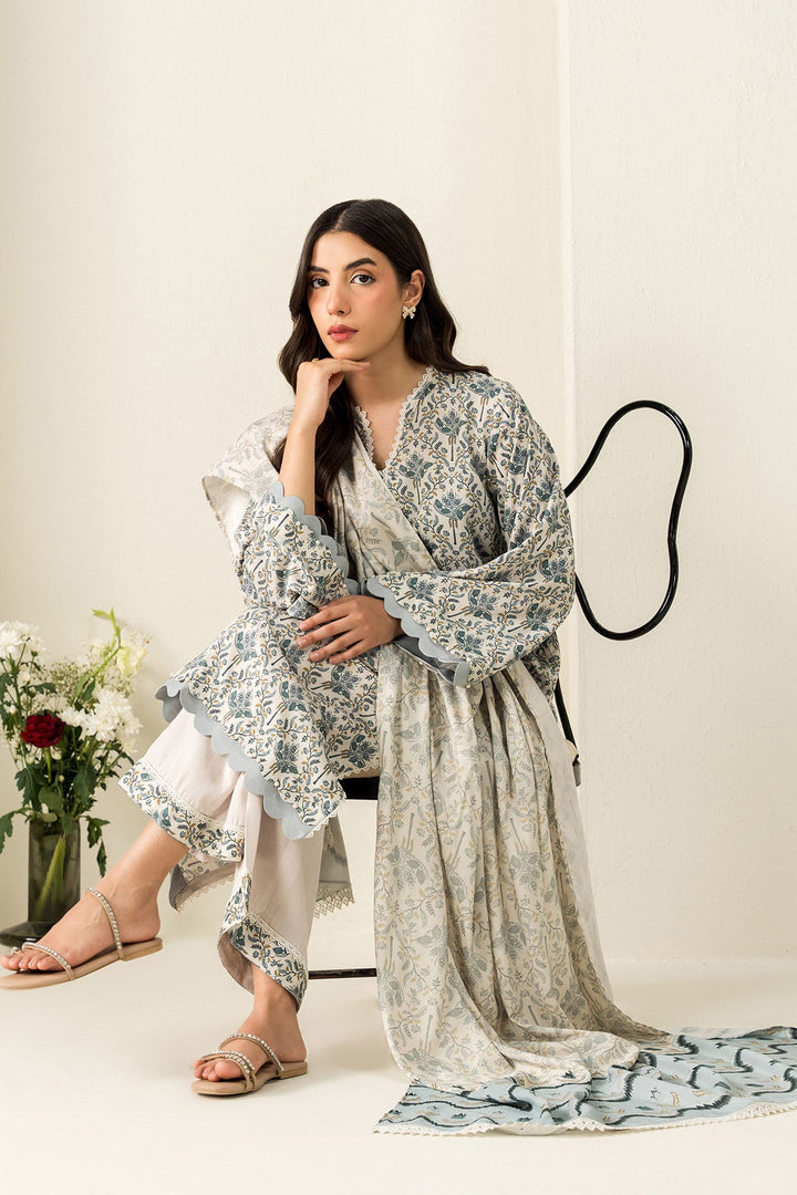 This elegant three-piece ensemble features a finely printed linen shirt paired with a dyed linen trouser, delivering both comfort and style. The set is completed with a matching printed linen dupatta that adds a graceful touch. Ideal for warm weather, the breathable linen fabric ensures ease of wear and a polished, timeless appearance. Perfect for those seeking a refined and sophisticated look.