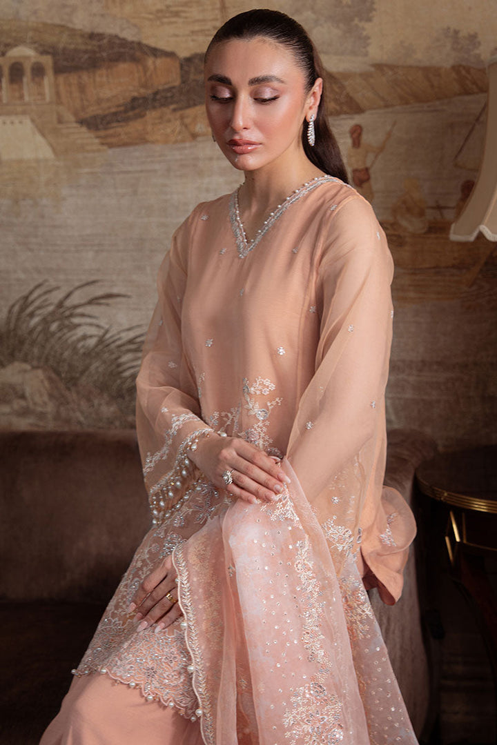 CORAL BLOOM-4PC ORGANZA EMBROIDERED SUIT