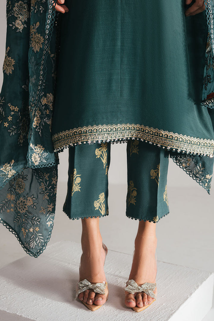 EMERALD GREEN-3PC EMBROIDERED SILK SUIT