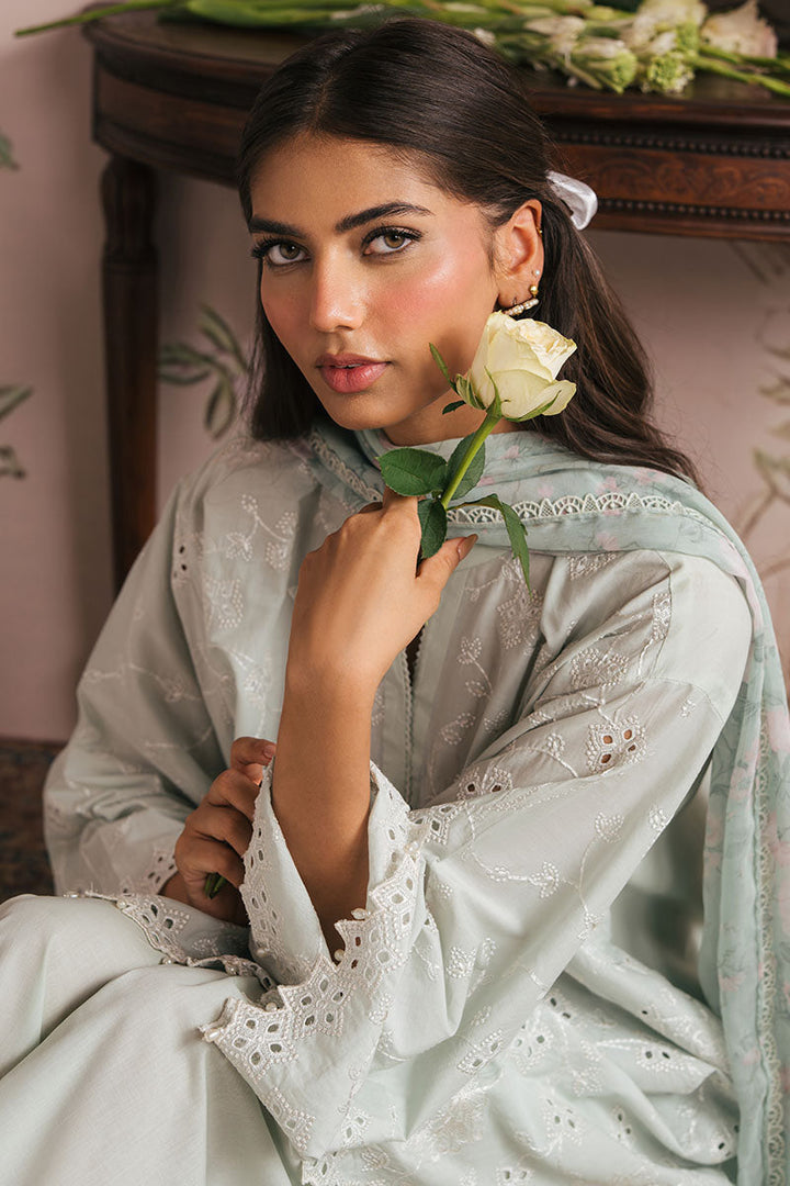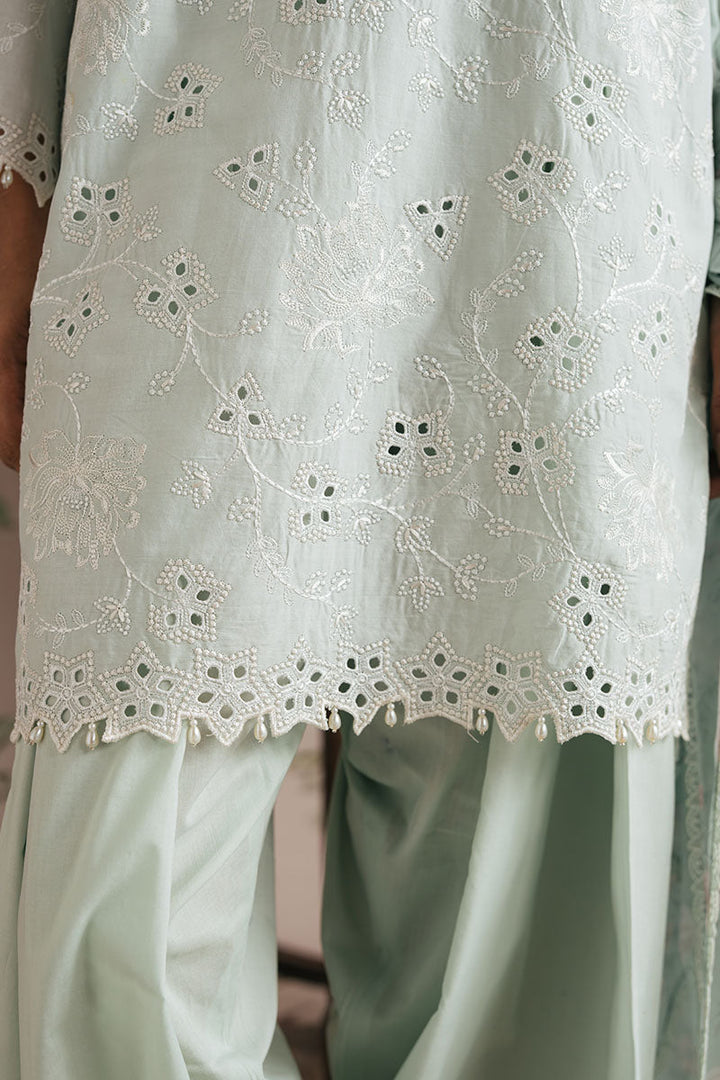 - This Floral Garland 3PC Chikankari Suit features a delicately embroidered lawn front and sleeves, paired with a dyed back for a refined contrast. The cambric dyed trousers offer comfort and durability, while the chiffon printed dupatta adds a graceful, flowing finish. Perfectly balanced for elegance and ease, this ensemble showcases expert craftsmanship in traditional Chikankari work.