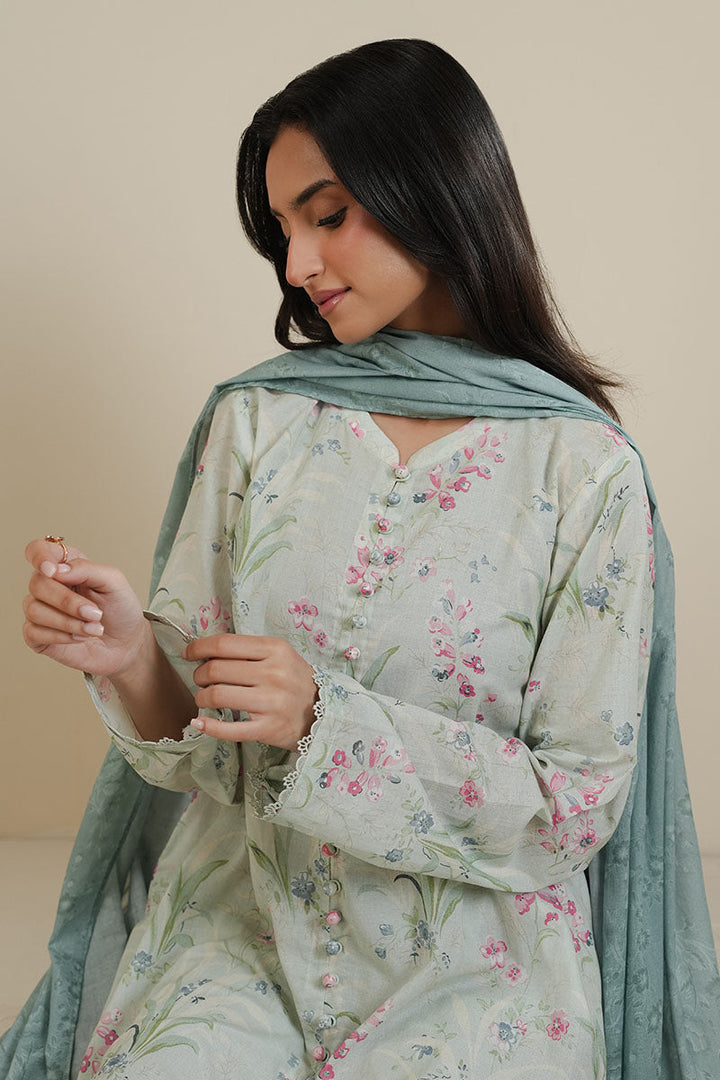 - This Floral Glint 3PC Printed Lawn Suit features a lightweight lawn printed shirt paired with a cambric dyed trouser for comfort and durability. The ensemble is completed with a matching lawn printed dupatta, offering a coordinated and elegant look suitable for warm weather. Ideal for those seeking breathable fabrics with vibrant prints and expert craftsmanship.