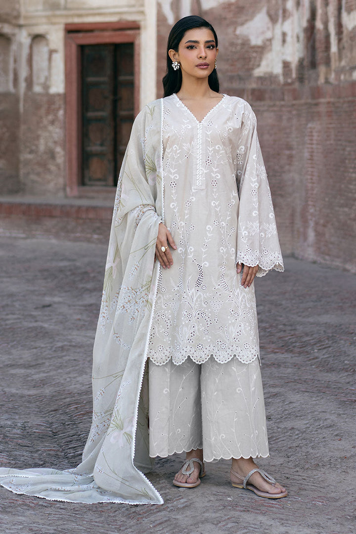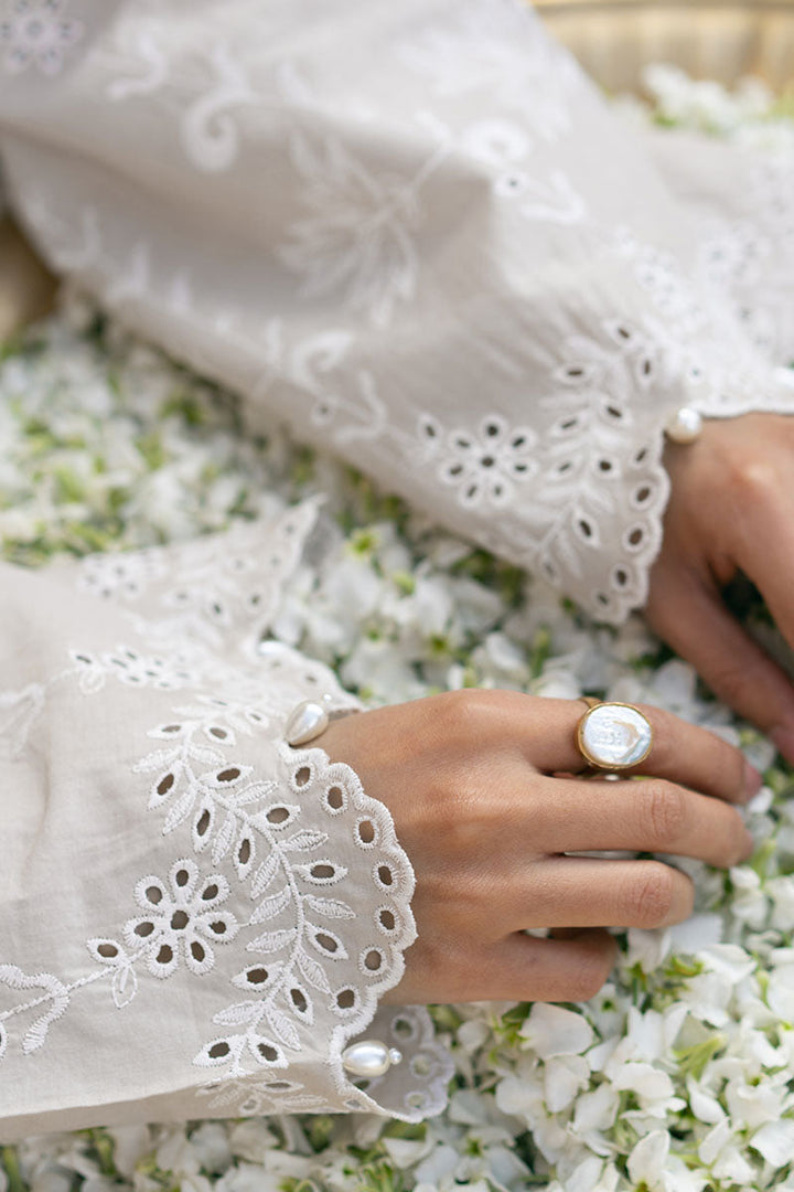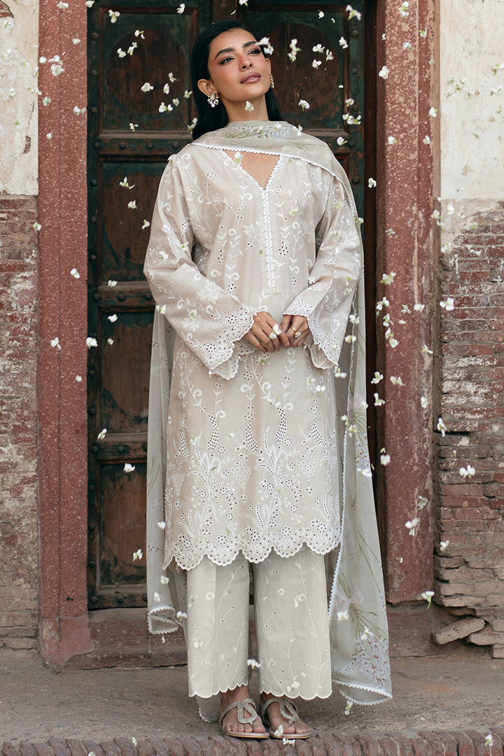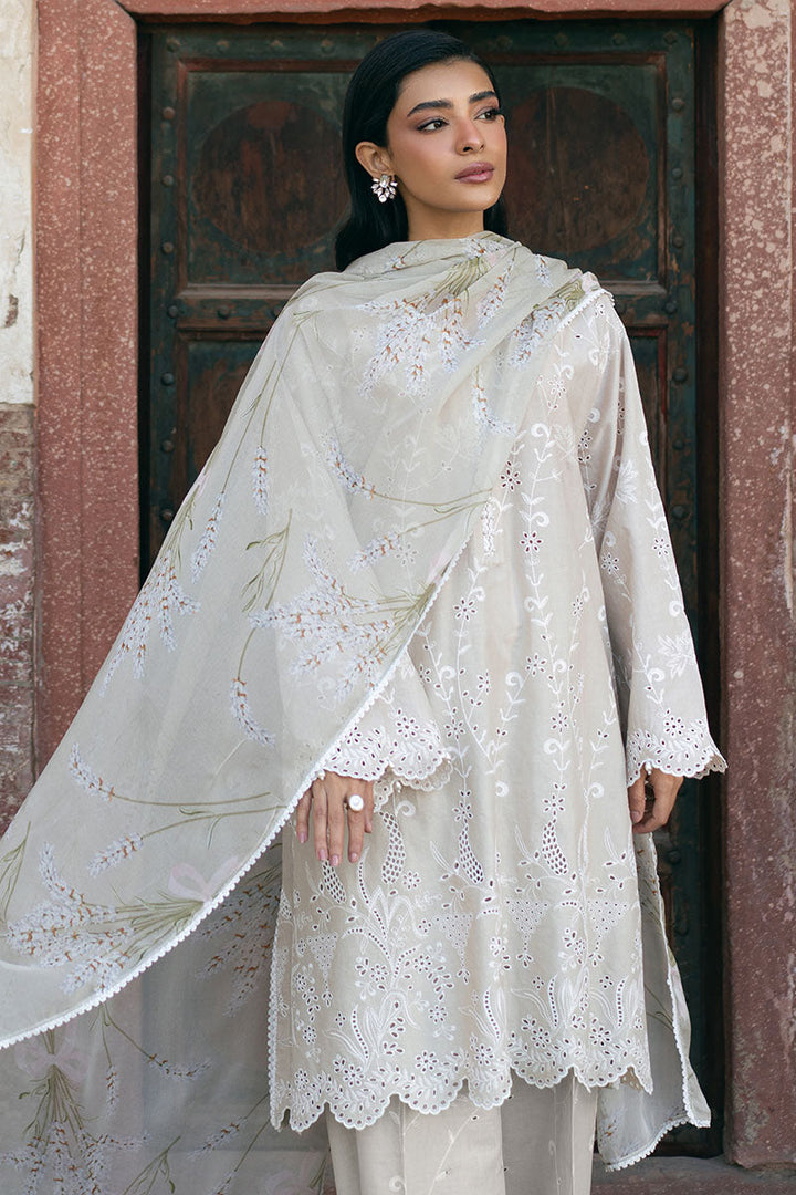 - Expertly crafted with chikankari lawn fabric, this 3-piece suit exudes elegance with its intricate front and sleeve design. The dyed back adds a touch of sophistication, while the cambric chikankari trouser ensures comfort and durability. Complete the look with the printed chiffon dupatta for a charming ensemble.