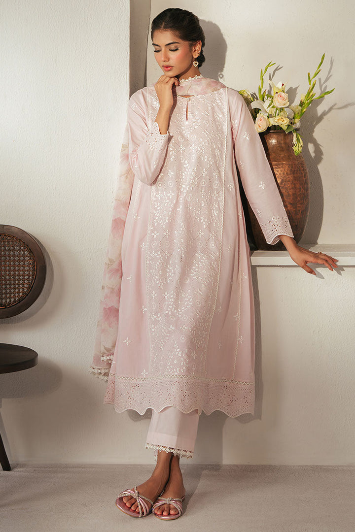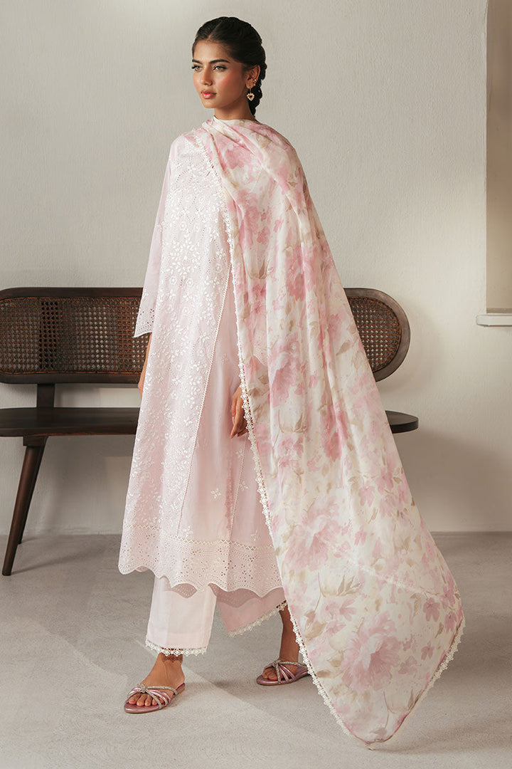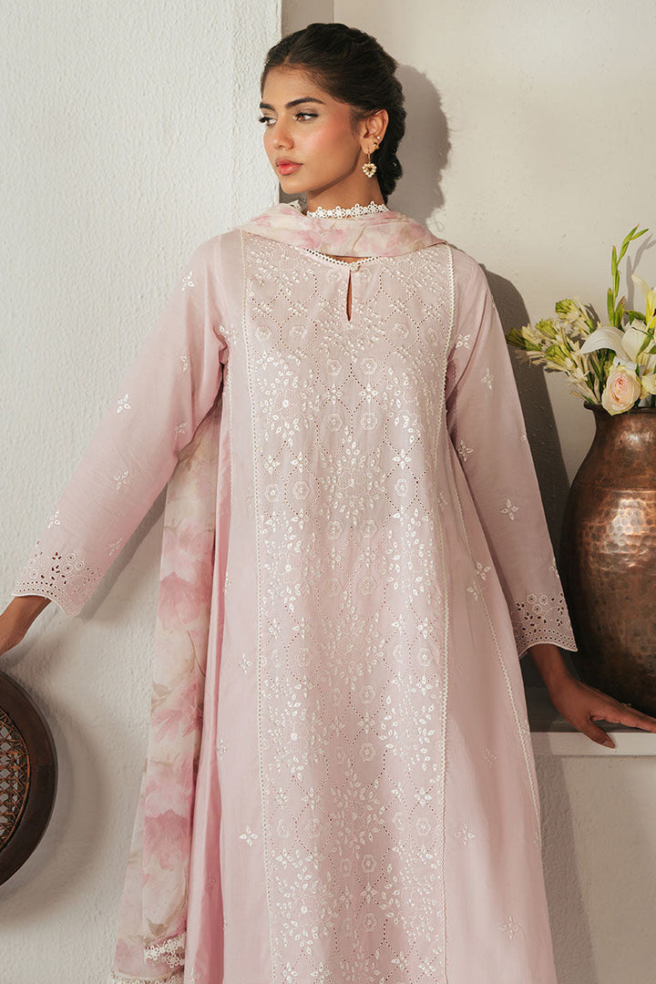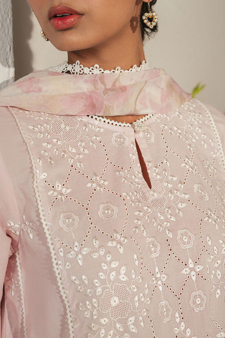 - This Lilac Rose 3PC Chikankari Suit features a delicately embroidered lawn front and sleeves, paired with a dyed back for a refined contrast. The cambric dyed trouser ensures comfort and durability, while the chiffon printed dupatta adds a graceful, flowing finish. Perfectly balanced for elegance and ease, this ensemble showcases expert craftsmanship in traditional Chikankari work.