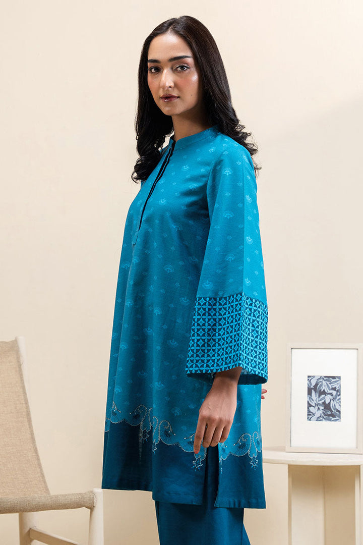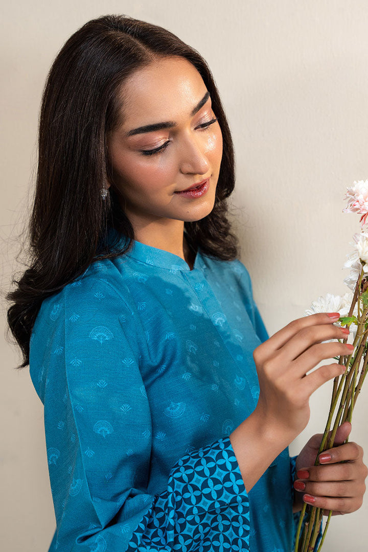 - This 2-piece khaddar suit features a bold midnight frost print on a lightweight, breathable shirt. The khaddar dyed trouser offers a comfortable and sturdy fit. Perfect for a chic and trendy look with a touch of traditional elegance.