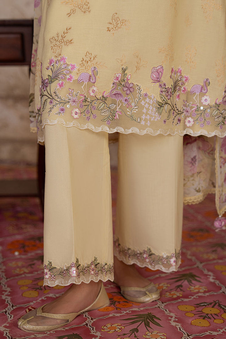 - The RADIANT MUSE-3PC JACQUARD SUIT is a must-have for any fashion-forward individual. This 100% cotton jacquard shirt boasts a stunning embroidered patti on the sleeves, measuring 40" in length. The accompanying cambric dyed trouser features a 60" embroidered patti, while the chiffon printed dupatta adds the perfect finishing touch. Elevate your style with this luxurious and versatile suit.
