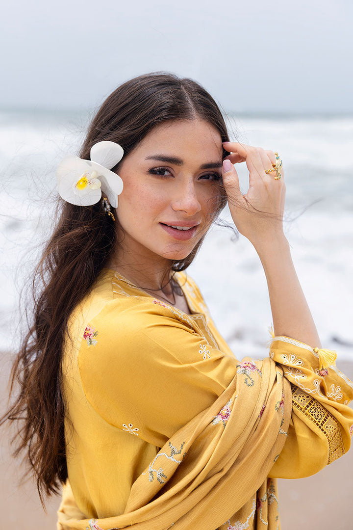 - This Rosette Bliss 3PC Satin Embroidered Suit combines elegance and comfort with its premium fabrics and intricate detailing. The shirt features 100% cotton satin with exquisite embroidery on the front and sleeves, complemented by a dyed back for contrast. The cambric dyed trouser includes a 60" embroidered patti, adding refined texture. Completing the set, the staple woolen dupatta is beautifully embroidered, offering warmth and style. Perfect for sophisticated occasions, this suit showcases expert craftsmanship while ensuring breathable comfort.