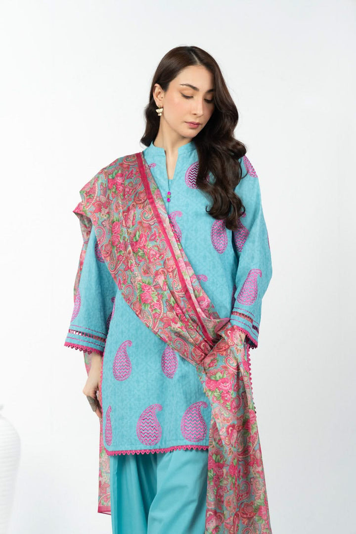 Embroidered Dyed Dobby Suit With Printed Silk Dupatta