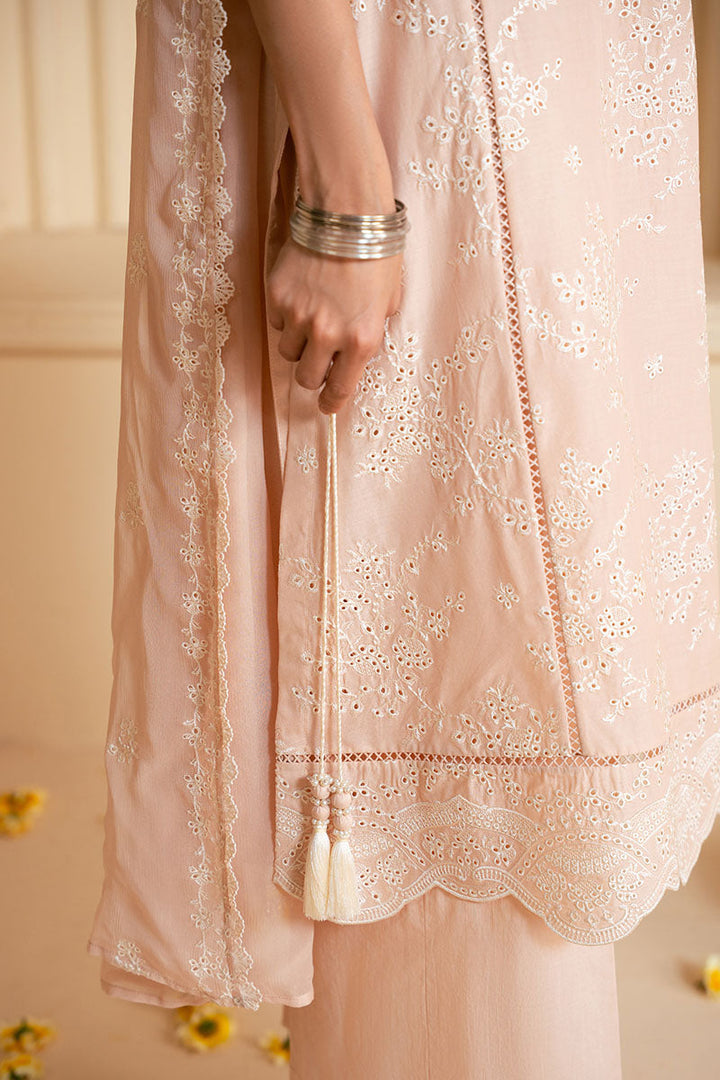 - This elegant ROSY DUSK-3PC CHIKANKARI SUIT features a chikankari lawn shirt with intricate embroidery on the front and sleeves. The dyed back adds a subtle contrast. The cambric dyed trouser complements the shirt perfectly. Complete the look with the chiffon chikankari dupatta for a touch of delicate elegance.