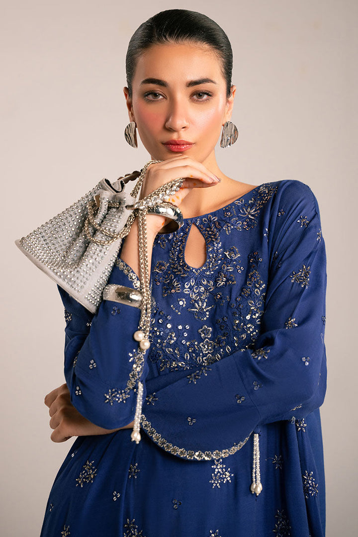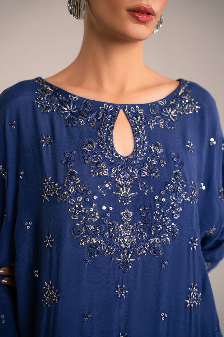 AZURE SPARKLE EMBROIDERED SILK SHIRT