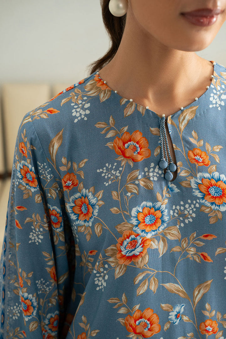 - This BLUE GLASS-3PC ensemble features a regular-style shirt with a stylish keyhole neckline and front print, paired with linen dyed box pants for breathable comfort and effortless elegance. The net printed dupatta adds a delicate, sophisticated touch, completing a balanced and refined look suitable for versatile occasions.