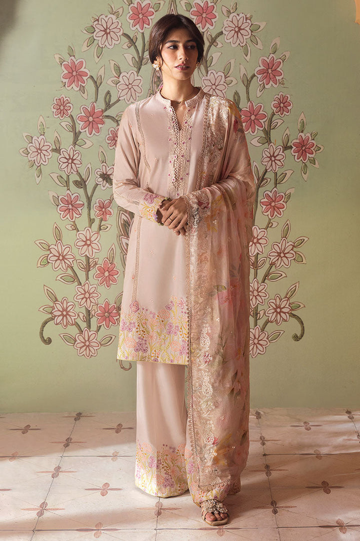 - Expertly crafted three-piece ensemble featuring a lawn shirt with intricate embroidery on the front, sleeves, and neckline, complemented by a dyed back. Includes a cambric dyed trouser with elegant embroidery details and a luxurious chiffon dupatta adorned with print and embroidery work. CORAL CARNATION offers sophisticated craftsmanship for a refined ethnic look.