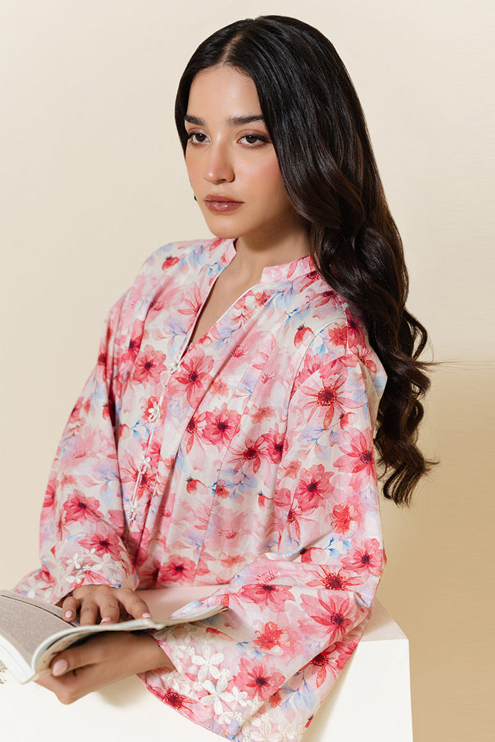 - Expertly crafted in an A-line style with drop shoulder and cambric panel, the FLORAL HEAVEN PRINTED SHIRT is a modern take on traditional shirts. The printed front and back, along with the half band neckline and dori piping, add a touch of elegance. The embroidered sleeves add a unique touch to this versatile piece.