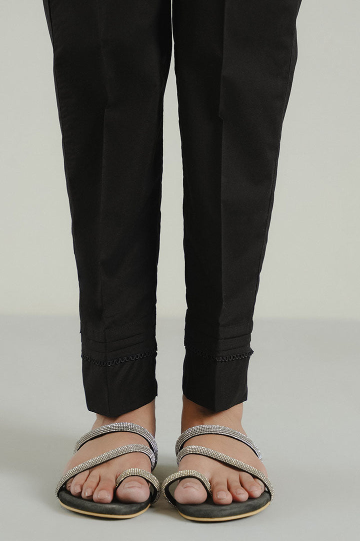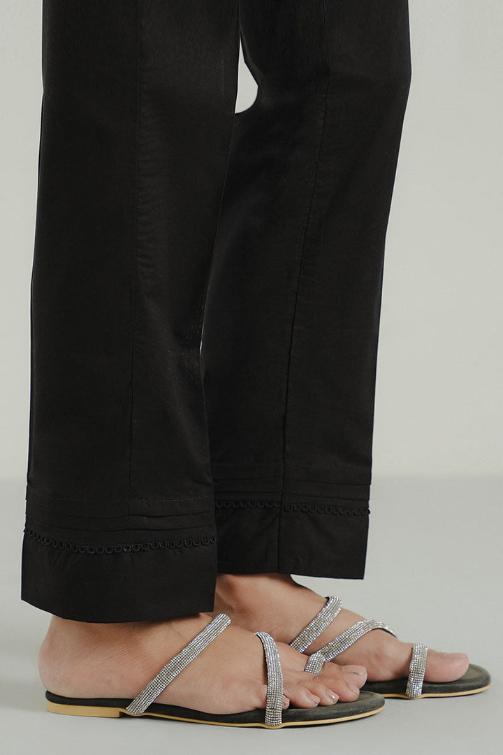 CAMBRIC STRAIGHT FITTED PANTS WITH LACE FINISH