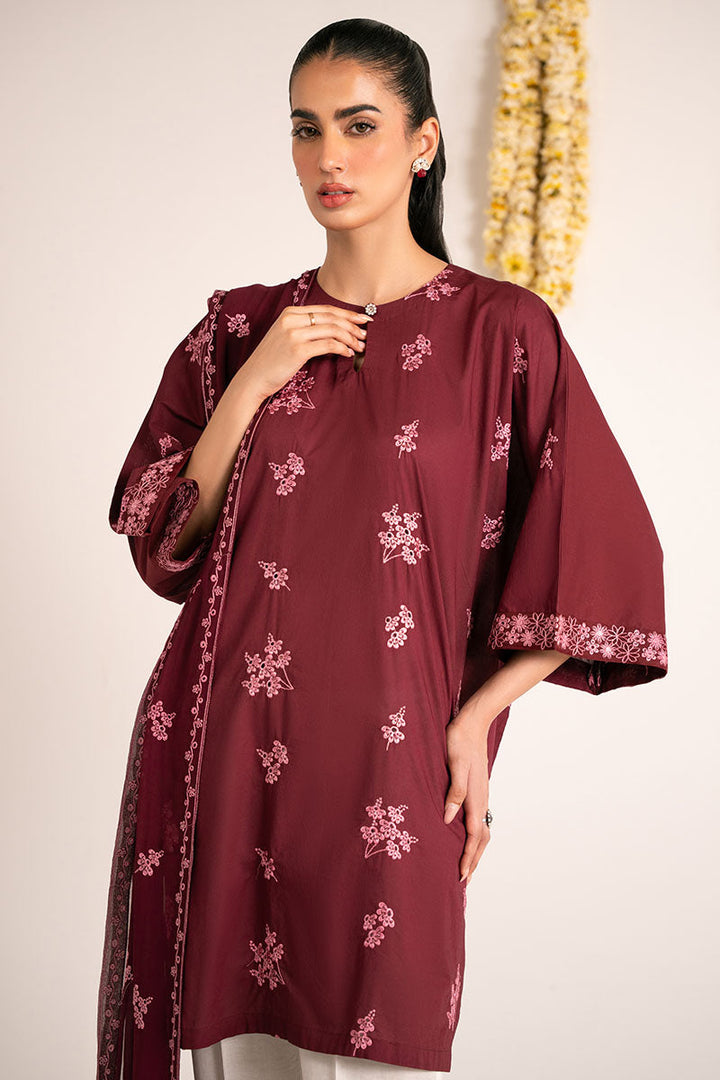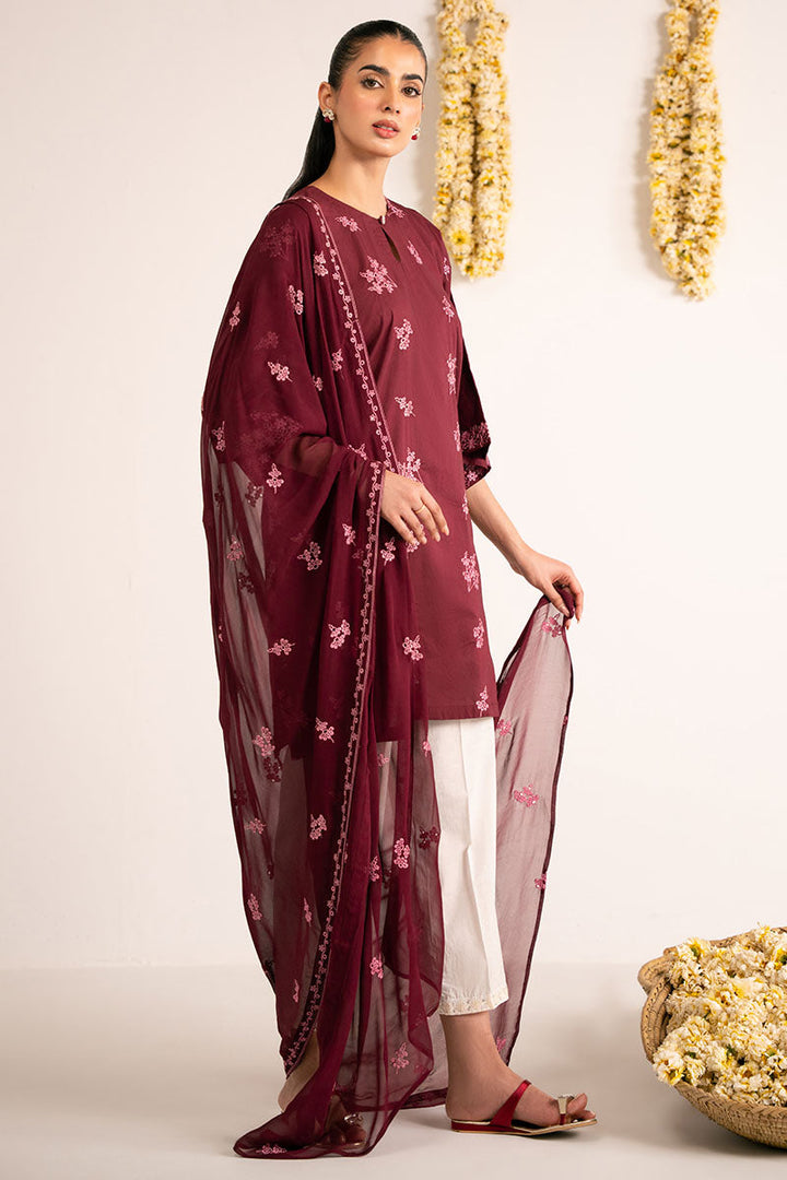 - Expertly crafted ROSE GLAM 2PC ensemble featuring a sophisticated batwing shirt with front embroidery and all-over dyeing. The crew neck is elegantly detailed with a keyhole button closure. Complemented by a luxurious chiffon dupatta with coordinating dye treatment and intricate embroidery, creating a harmonious and refined look.