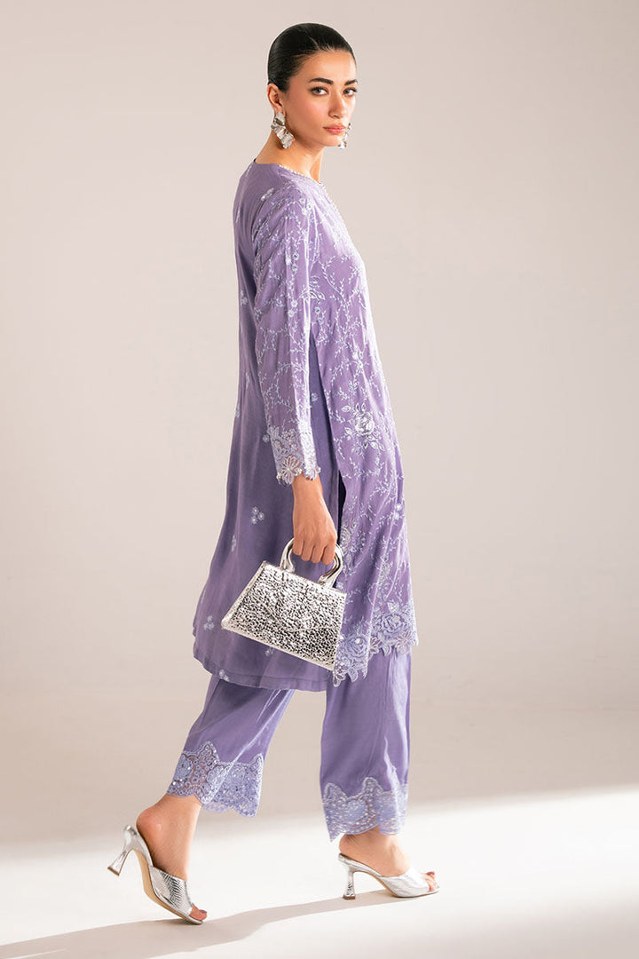 - The Winsome Orchid-2PC set features a beautifully embroidered flared shirt made of silk, with additional detailing at the crew neck and sleeves. The included trousers are also made of silk, dyed and embroidered for a luxurious touch. Perfect for any formal occasion, this set is sure to make a statement.