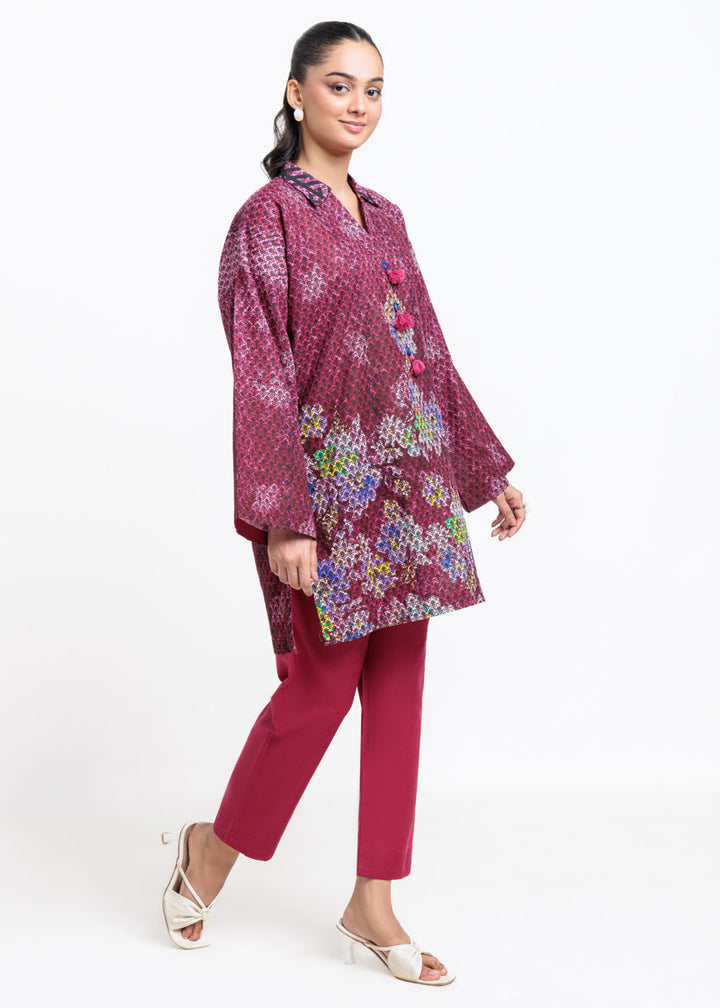 Printed Khaddar Drop Shoulder Loose Shirt.