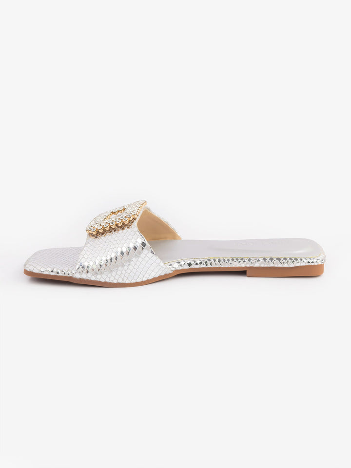 - Snake patterned flats with stone embellished buckle