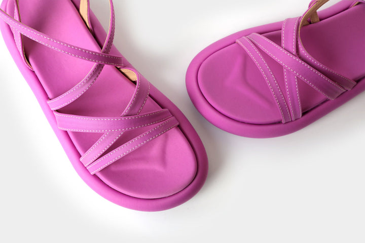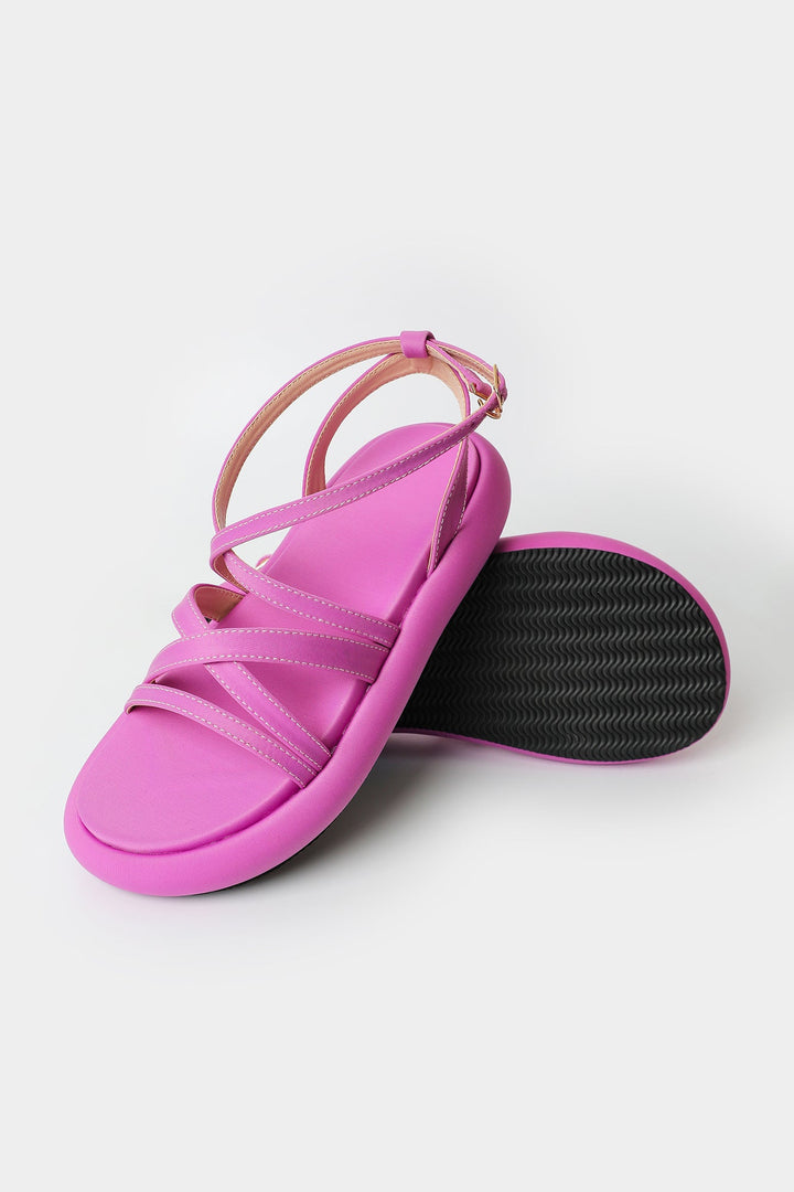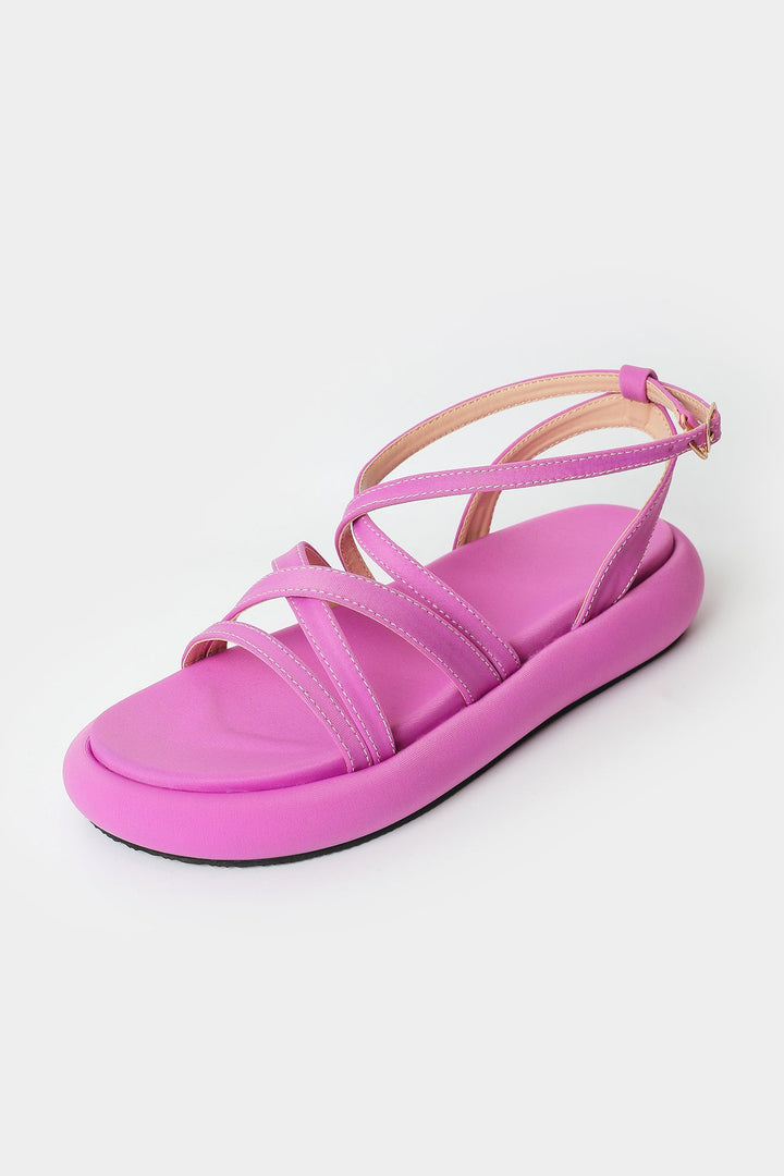 A chic and trendy design is layered over this elegant lavender shade sandal. Adorned with criss cross strap design, this exquisite sandal is a great option to style with trendy outfits.