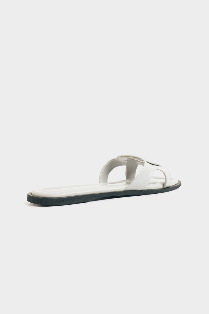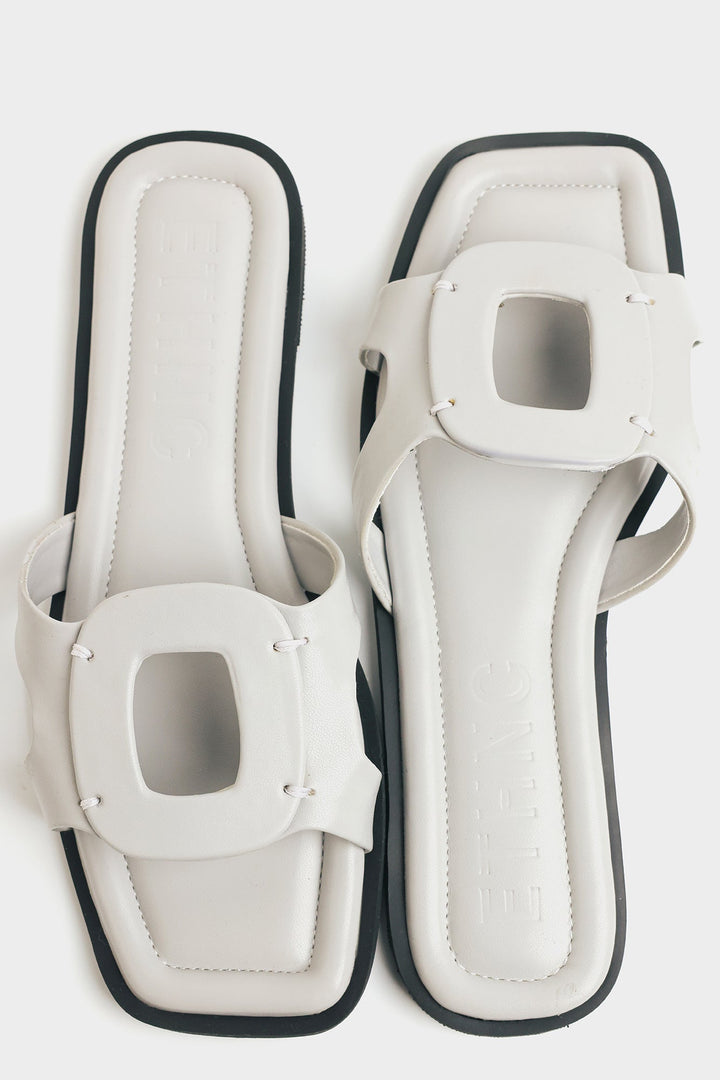 This antique white slip-on sandal features a unique square hole design for added breathability and style. Comfortable and effortless, it's the perfect addition to any summer wardrobe.