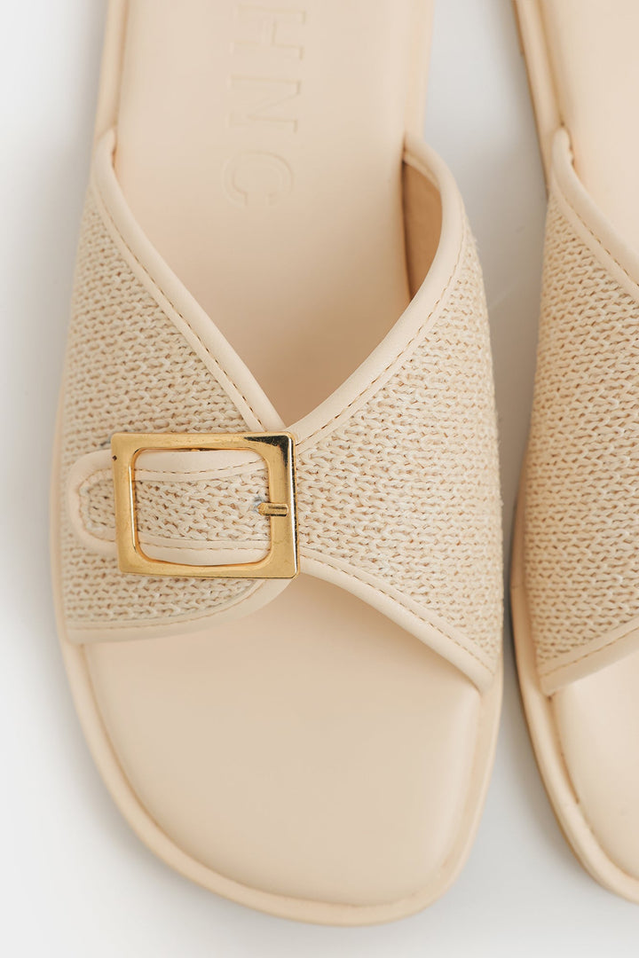 This elegant sandal features a classy design rendered in a mesmerizing vanilla ice color and adorned with cross strap with buckle at top. The beautiful unique design and quality materials make it a must-have for any fashion-savvy individual.