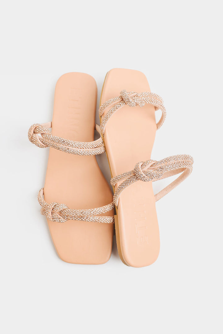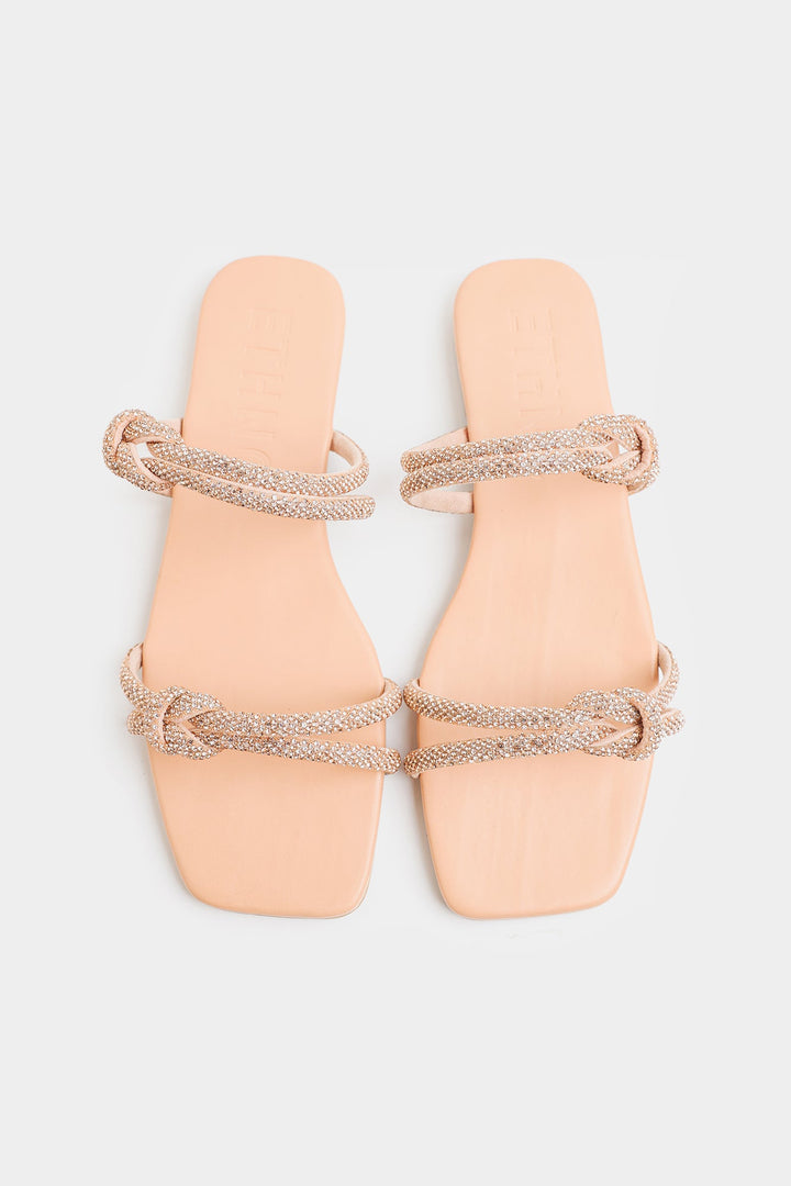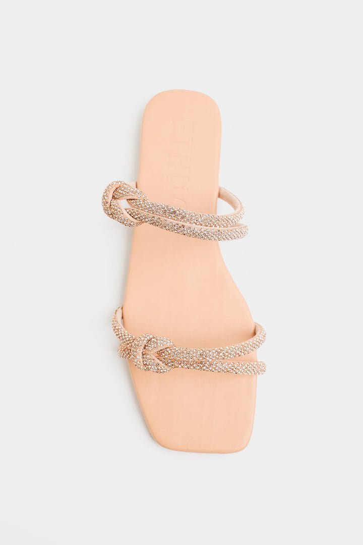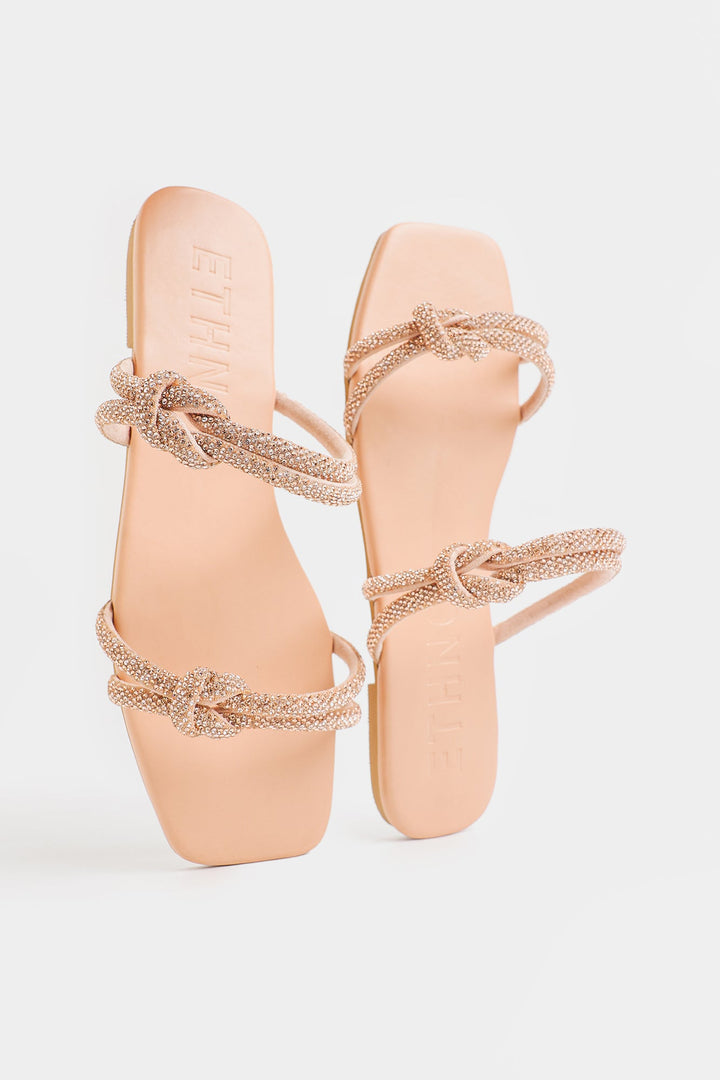 Radiate effortless glamour with these enchanting beige flats, featuring shimmering rhinestone-embellished straps elegantly knotted for a touch of refined sparkle. Designed for both dazzling comfort and versatile style, they're the perfect accessory to elevate any look from day to evening.