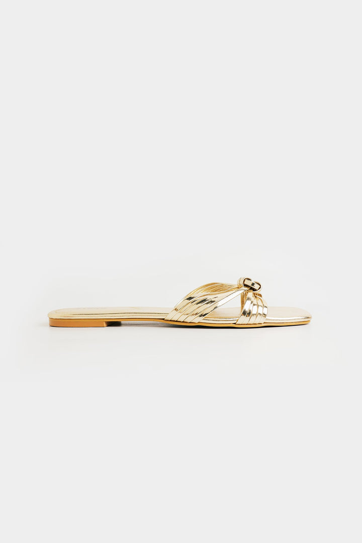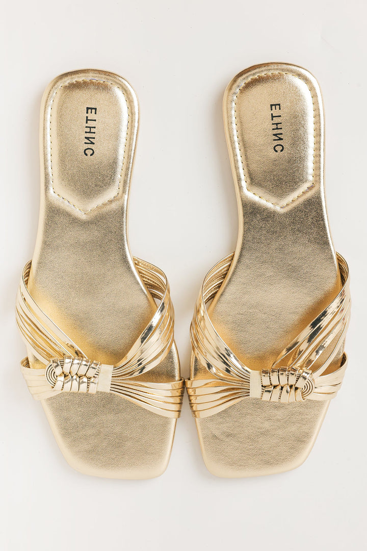 Step up your style with our stunning knotted effect in gold color sandals, these sandals will add a touch of elegance to any outfit. Crafted with high-quality materials, they provide both durability and comfort. Elevate your wardrobe and stand out from the crowd with these statement sandals.