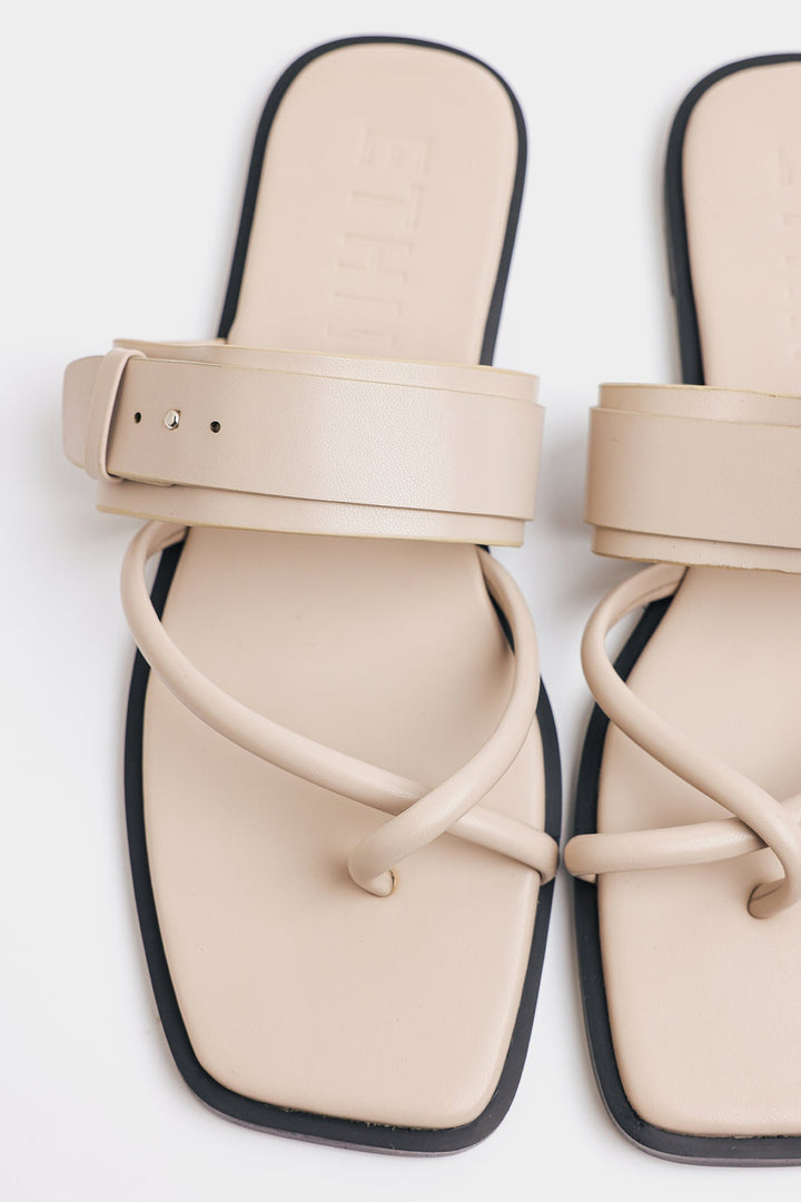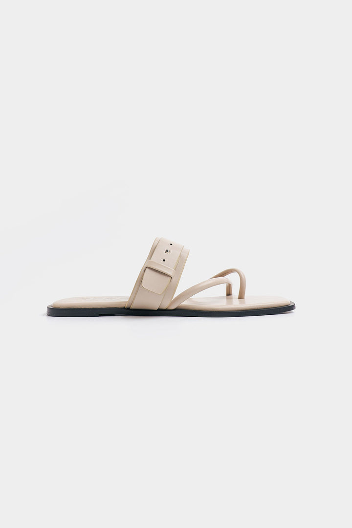 Step into effortless style with these modern beige cross-toe post sandals. Crafted with a sleek square toe and featuring a unique, overlapping strap design, these sandals offer a contemporary twist on a classic silhouette. The adjustable buckle ensures a comfortable and secure fit, making them perfect for everyday wear. Pair them with your favorite casual outfits for an instantly chic look.