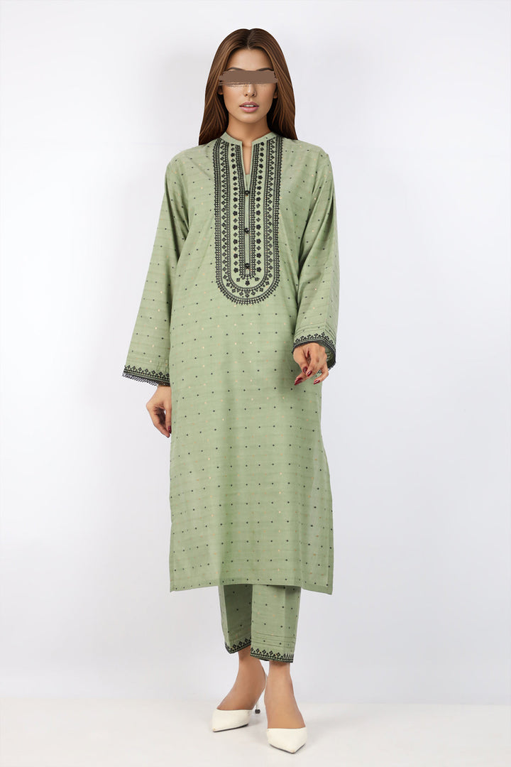 Shirt: Embroidered Cotton Jacquard Stitched Shirt