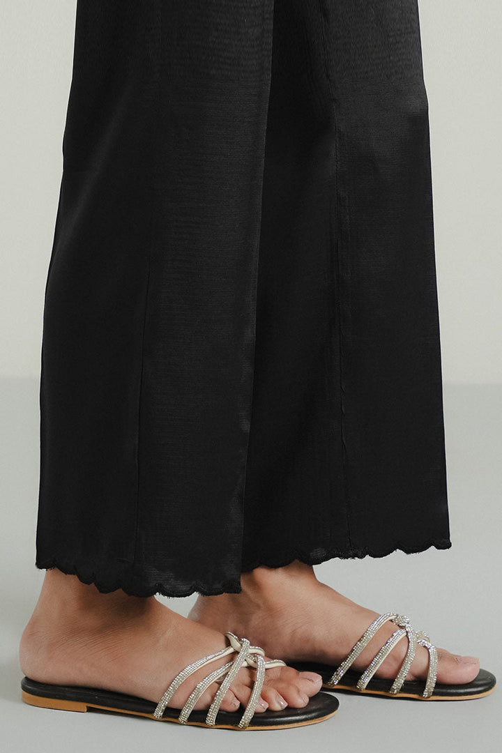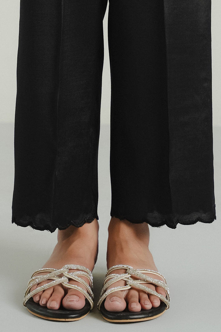 RAW SILK EMBROIDERED SCALLOP STRAIGHT PANTS